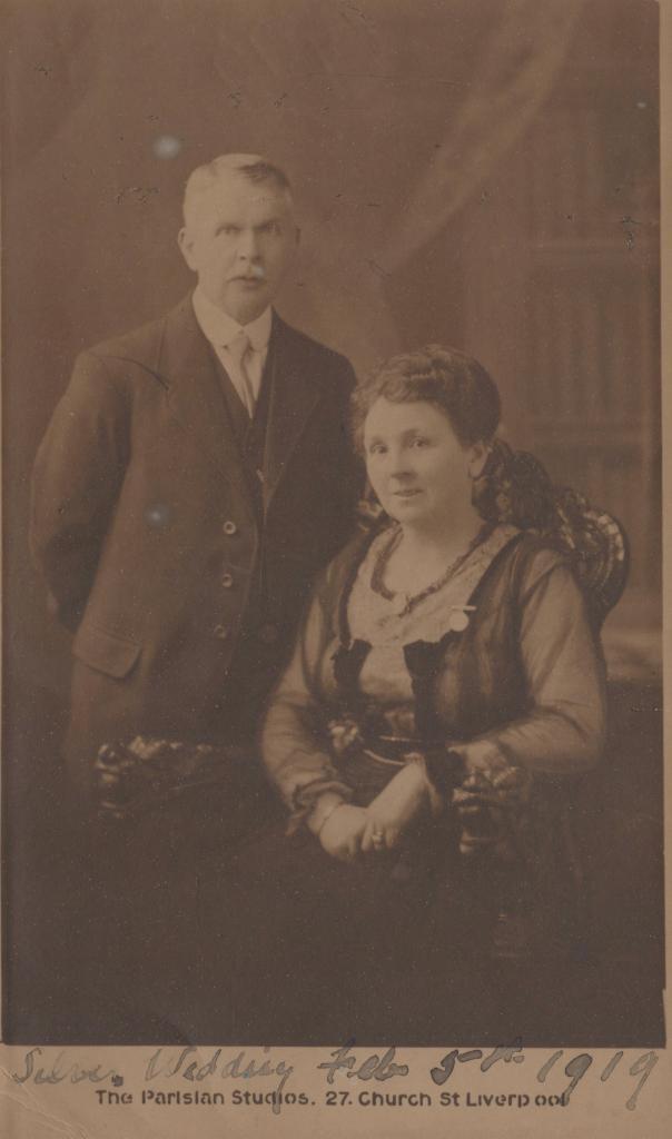 c. 1913Postcard showing an unknown couple. The text 'Silver Wedding Feb 5/9/9 (?)' is seen.