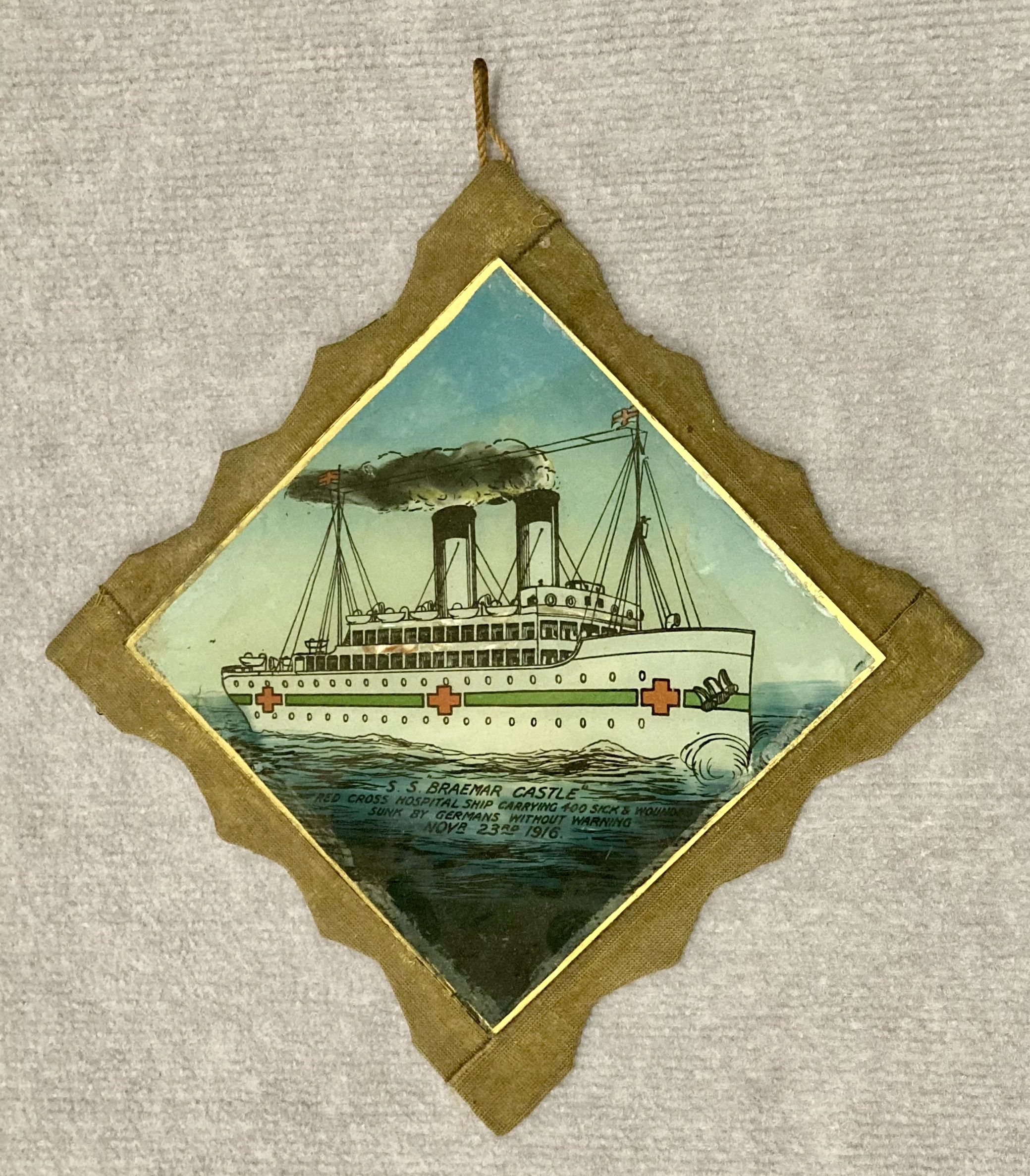 Reverse glass painting memorial to hospital ship S.S. Braemar Castle