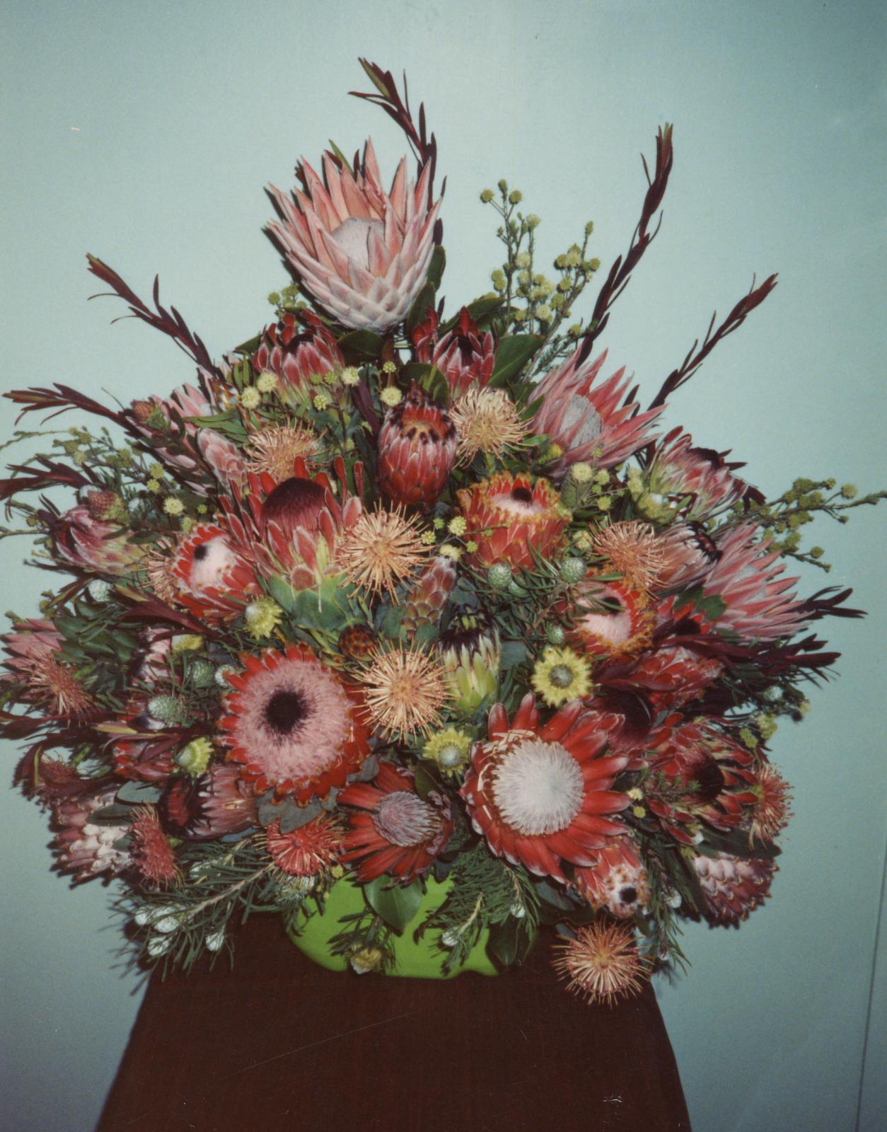 During the 1980's -2000's, John and Margaret Benn grew Proteas on several acres of their farm at Boscabel. These were sold locally and exported to many other florists. Margaret is a keen floral decorator and contributed many beautiful displays to events and weddings in Kojonup.