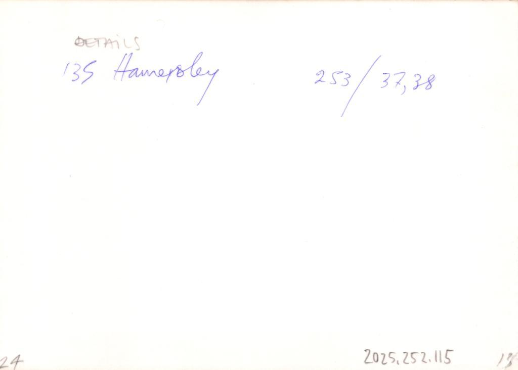 Reverse: Written on the reverse in pencil 'DETAILS' and in blue pen '135 Hamersley' and '253/37,38'
