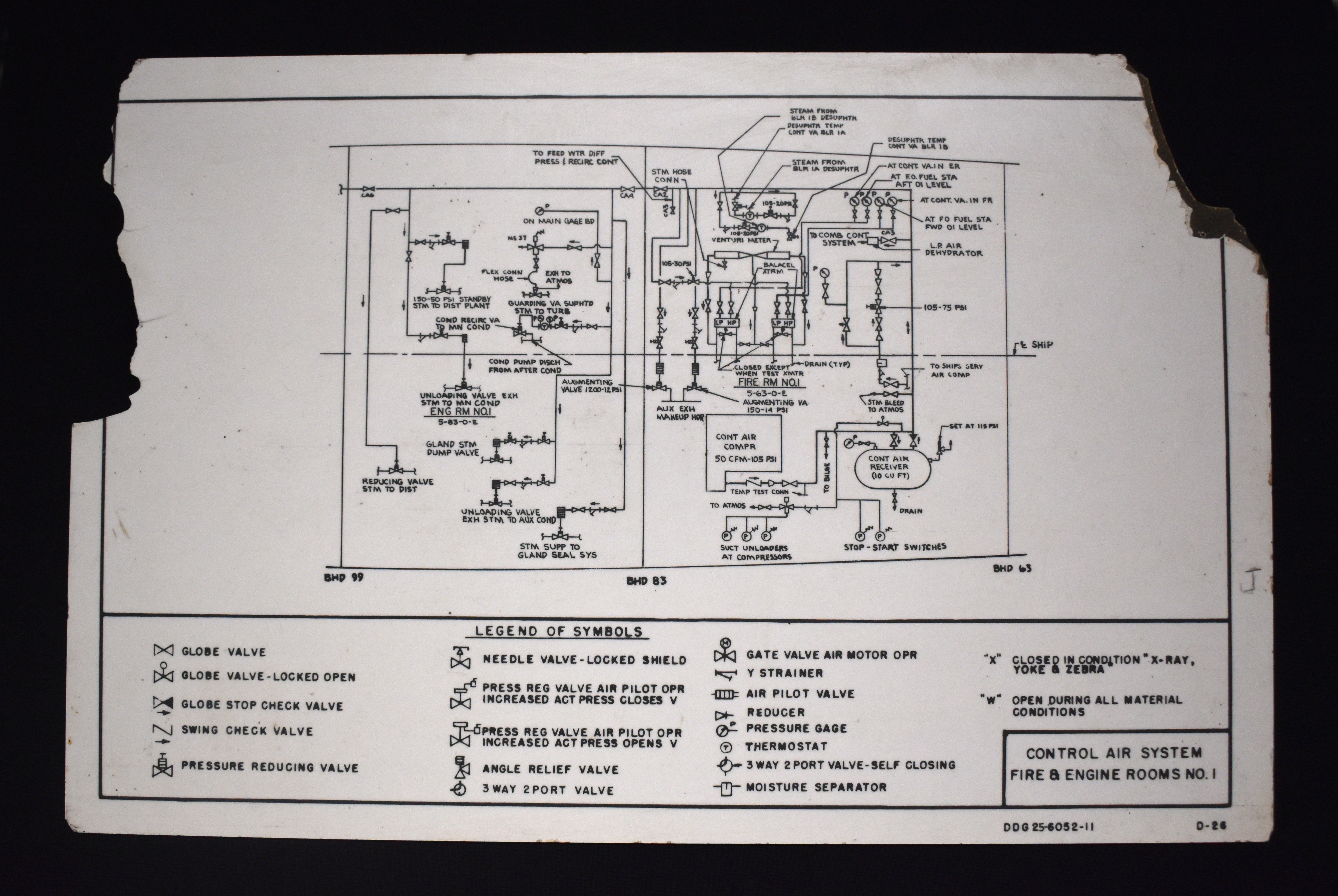 Heading in main legend reads "CONTROL AIR SYSTEM / FIRE & ENGINE ROOMS NO. 1".