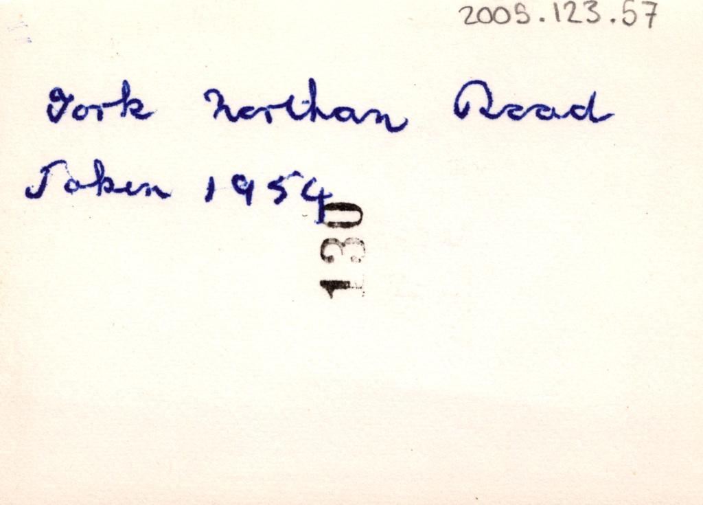 Reverse: Written in blue pen, 'York Northam Road', 'Taken 1954'. There is a number stamped in black, '130'.