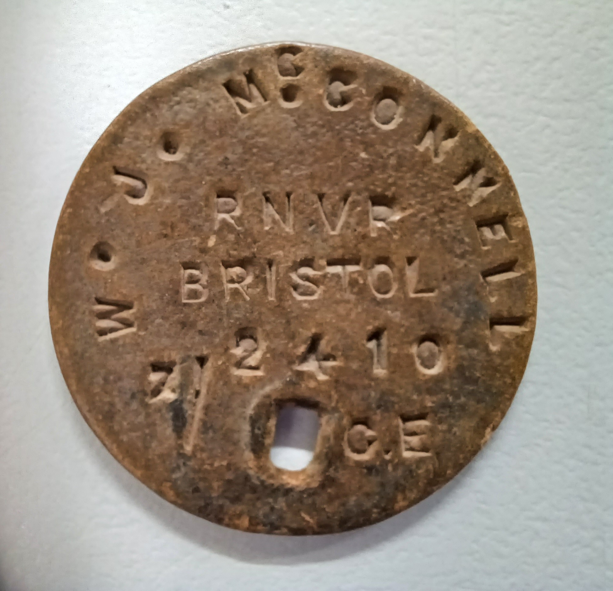 This red identity disc was issued to Walter John McConnell (Z/2410). Born in 1900 in Towerfield, Bristol, England, Walter enlisted in 1918 with the Royal Navy and trained for the Royal Naval Volunteer Reserve (RNVR) at HMAS Victory VI, which specialised in signalling, wireless telegraphy and engineering. He then served as a clerk at HMS President IV, a shore base that handled personnel management (ie administration, payroll, accounts).