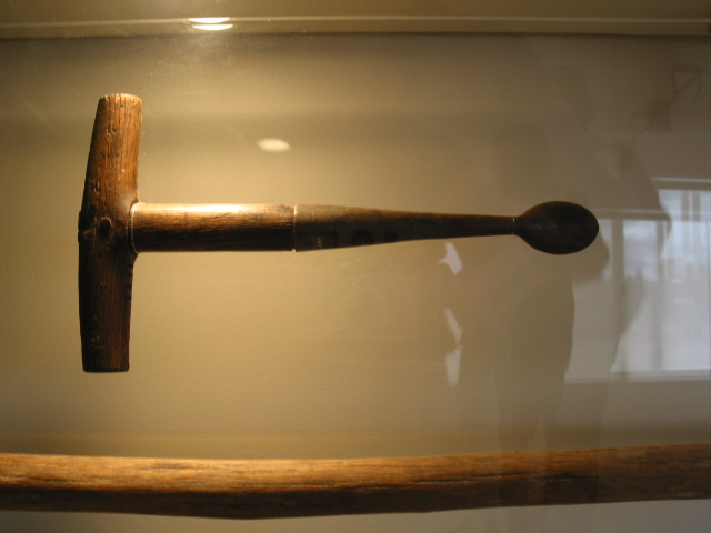b) Mallet Bark Hoe(2) : This impement was used to initially cut into the bark covering of the Mallet tree to separate the bark from the trunk