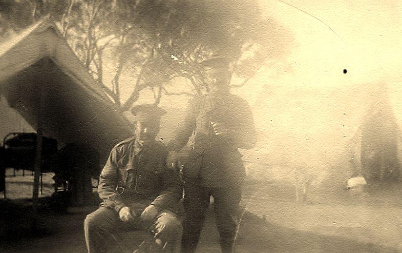 1915Jack Coulthard and Charleton in front of tents, Duntroon