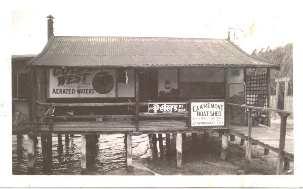 Widow, Mrs Jessie Adelaide Wibberley, was proprieter of the Claremont Boat Shed from 1943/44 to 1952. Behind the small kiosk were living quarters consisting of three small bedrooms, a bathroom with chip heater and a living room with fireplace for cooking. A small kitchen with electric stove was added later. As well as selling drinks, icecreams, bait and fishing tackle, the family hired out boats and crabbing nets. The business did well as there were few privately owned boats and people had to book their boats for the weekend. They had about six or eight rowing boats - Charlie, West, Edna, May, Victor and Flatty - and after a few years added Atco outboard motors. During the war there was an army training camp at Point Walter and a ferry would bring the men on leave across to the Claremont Jetty.