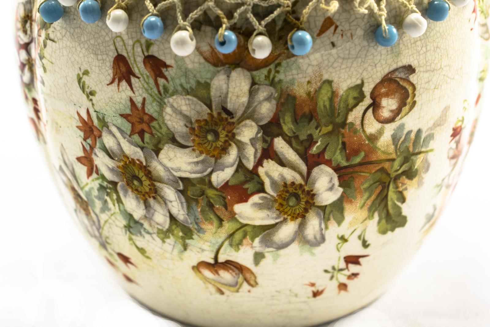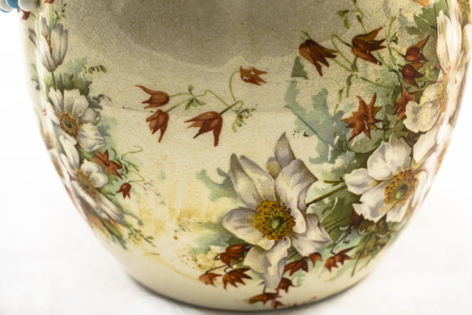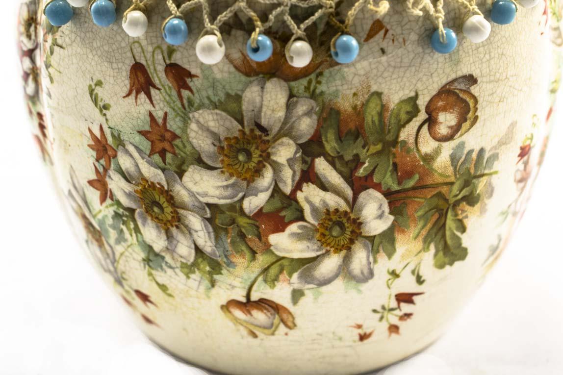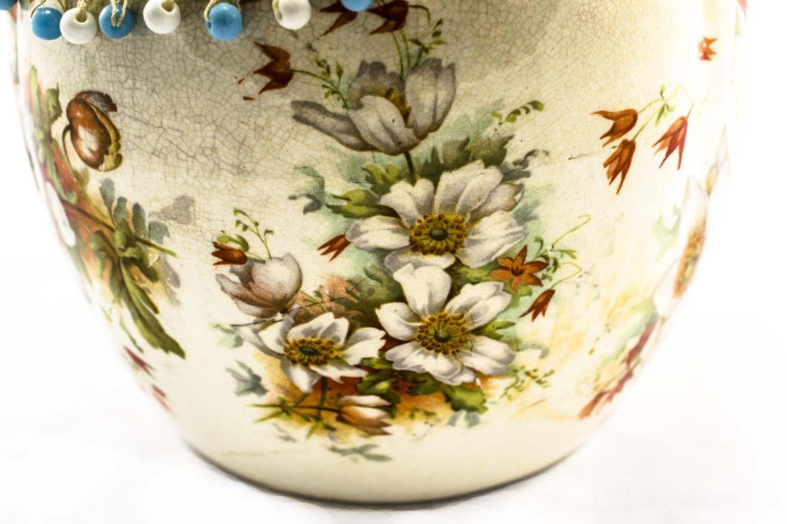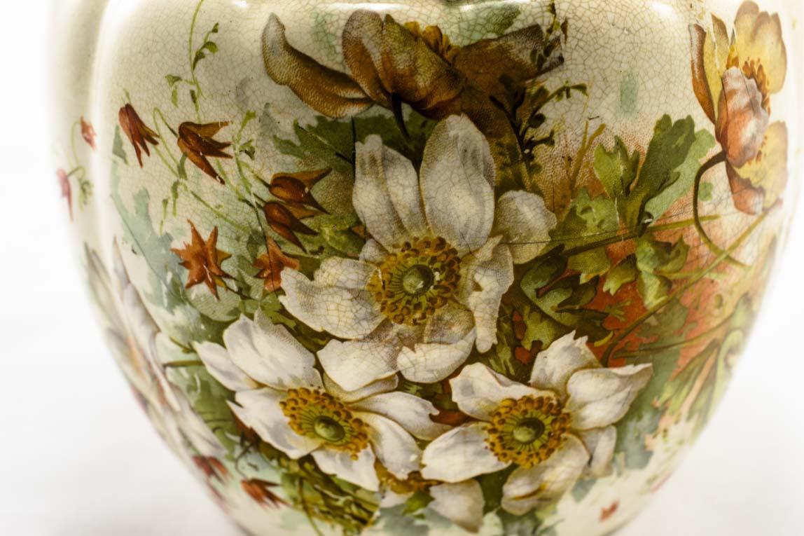 A China Biscuit Barrel with orange and white dog rose floral design.