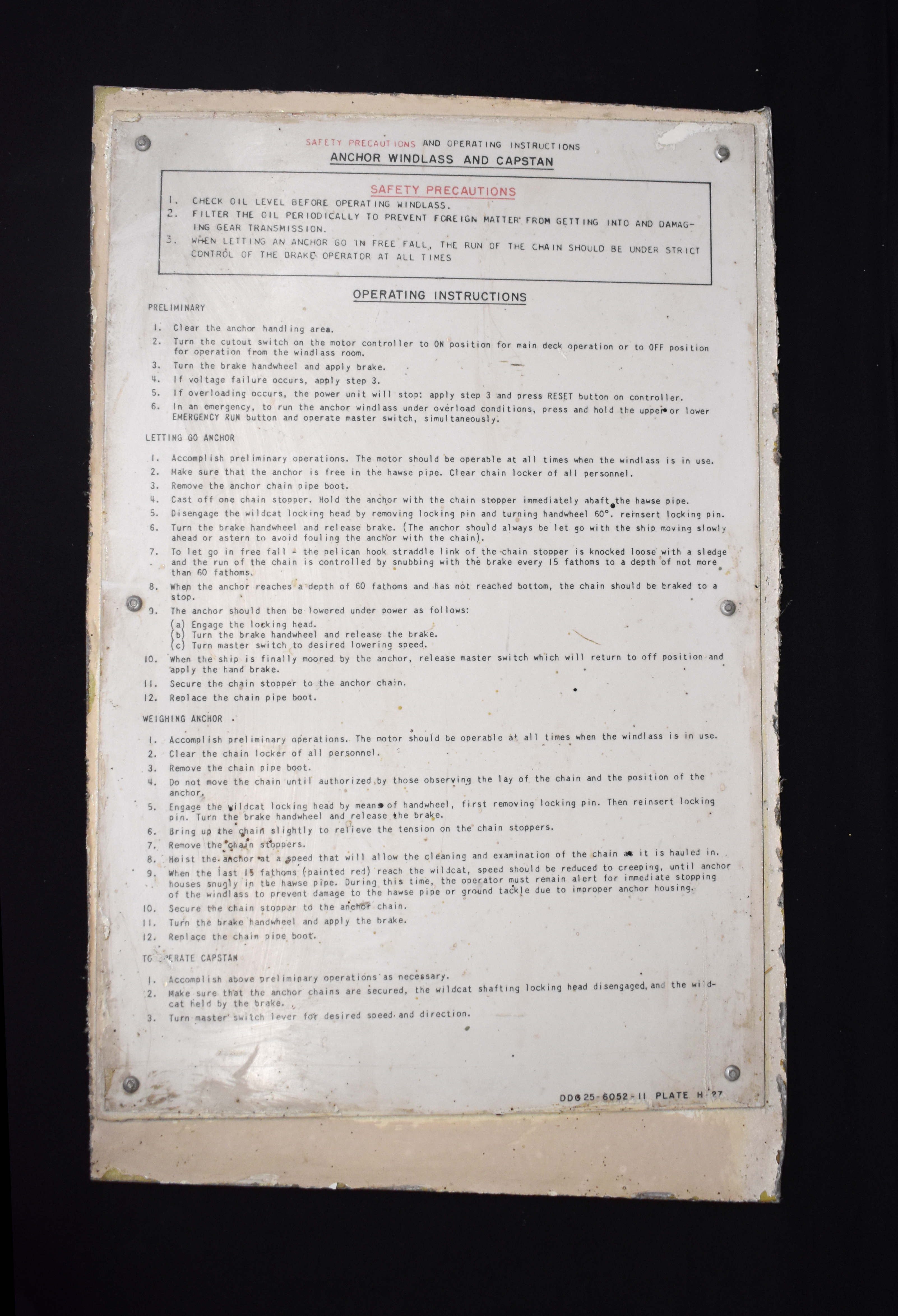 HMAS Perth II Anchor Windlass and Capstan Sign
