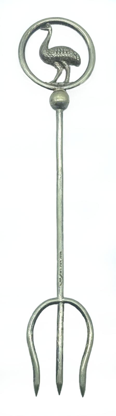 Although there is no date on this fork, it was purchased with two others featuring a kangaroo, one of which has the date 1914 engraved on it. As well as the emu and kangaroo, similar patriotic forks were produced featuring other birds and animals.