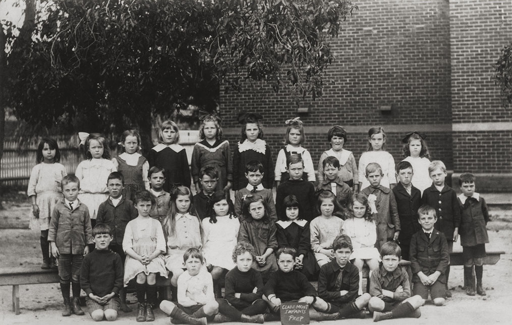 c. 1925Four rows of Claremont State School Infants Prep pupils.
