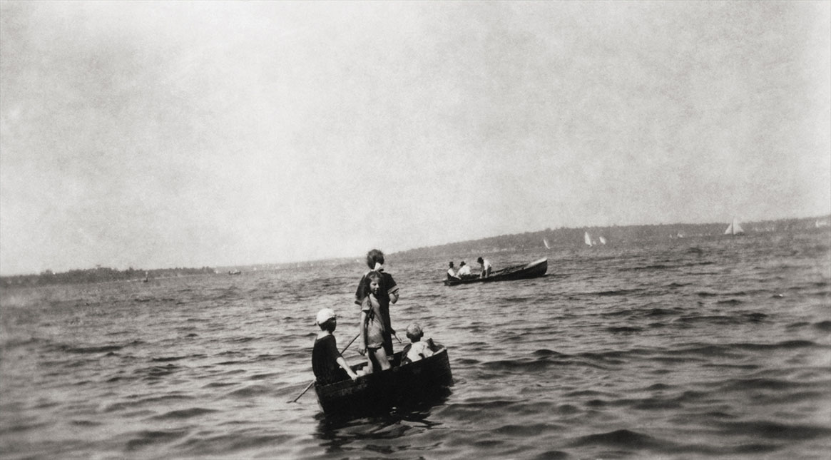 View from Claremont To Point Walter. Olive Shaw and friends on Freshwater Bay in a small boat.