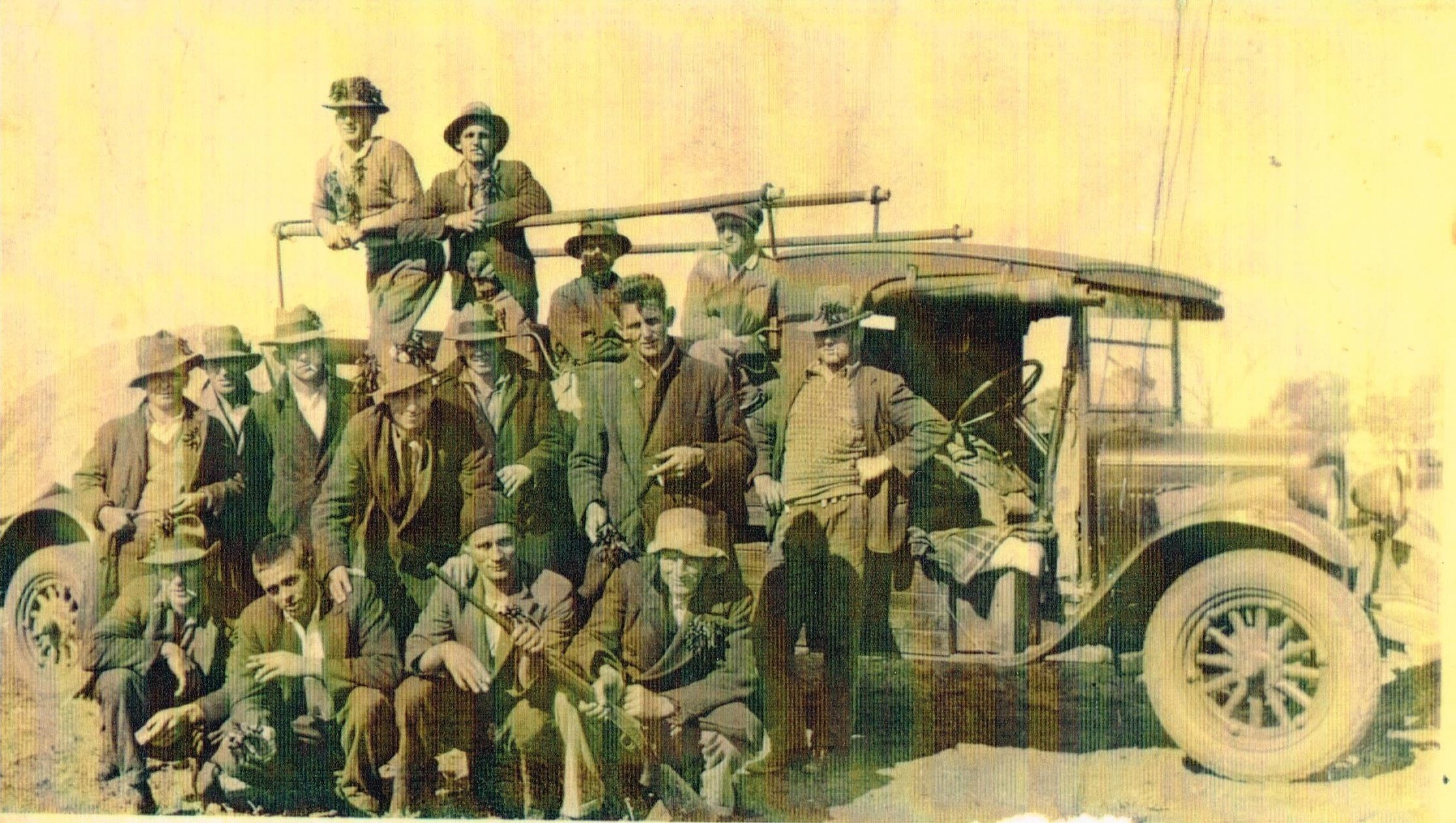 c. 1930 - 1950A shearing team travelling north. Bill Norrish is on the truck on the left.