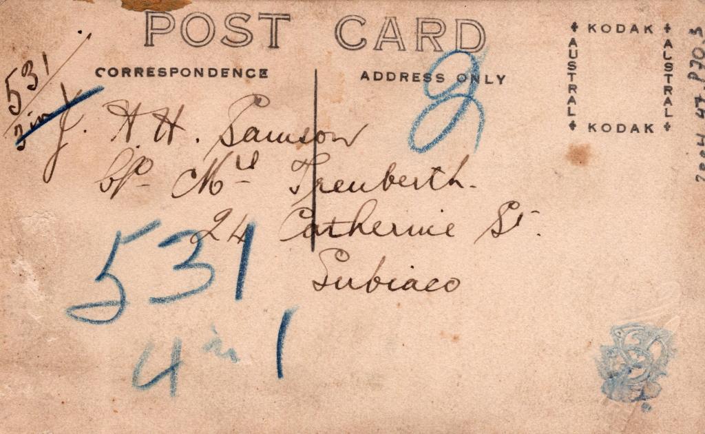Reverse: Written in black pen '…? Trenberth 24 Catherine St Subiaco'