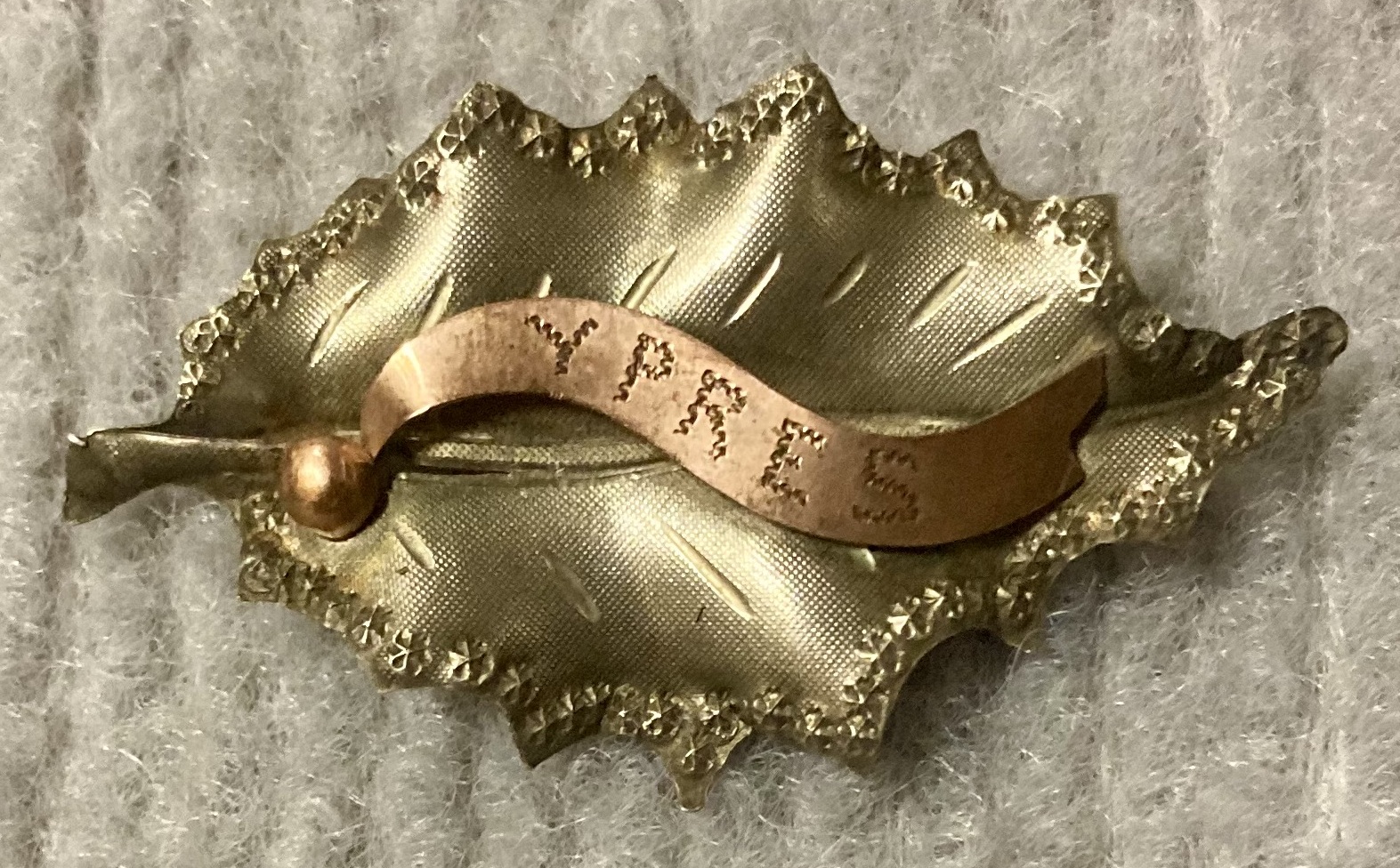 WWI Ypres souvenir sweetheart brooch with leaf design