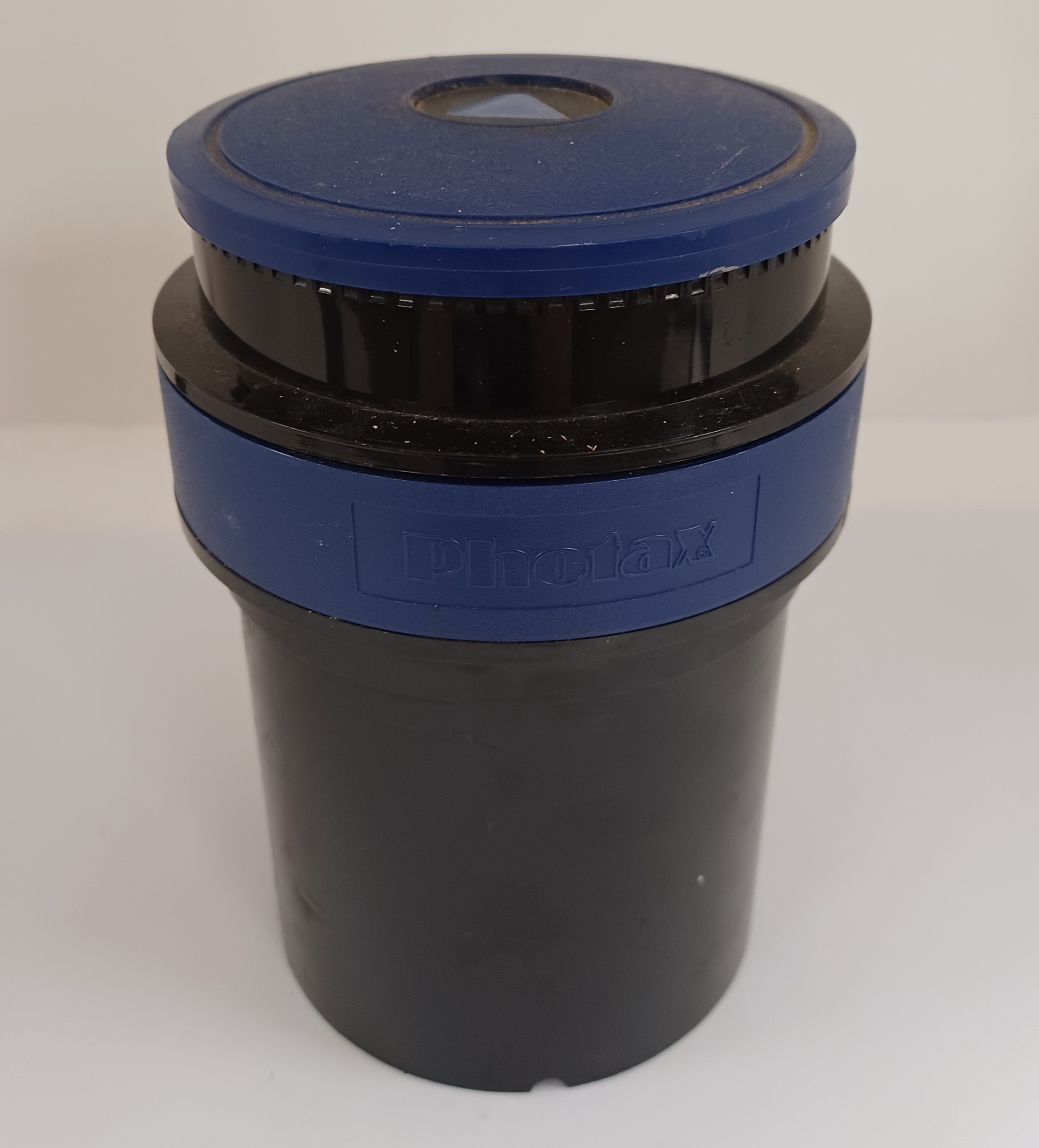 A Photax film development canister (or tank) is a light-tight container used for processing black & white and color film at home, popular for its robust design, often featuring universal reels for different film formats like 35mm and 120, requiring loading in the dark (using a changing bag if no darkroom) before adding chemicals for development, offering a reliable way to develop film
