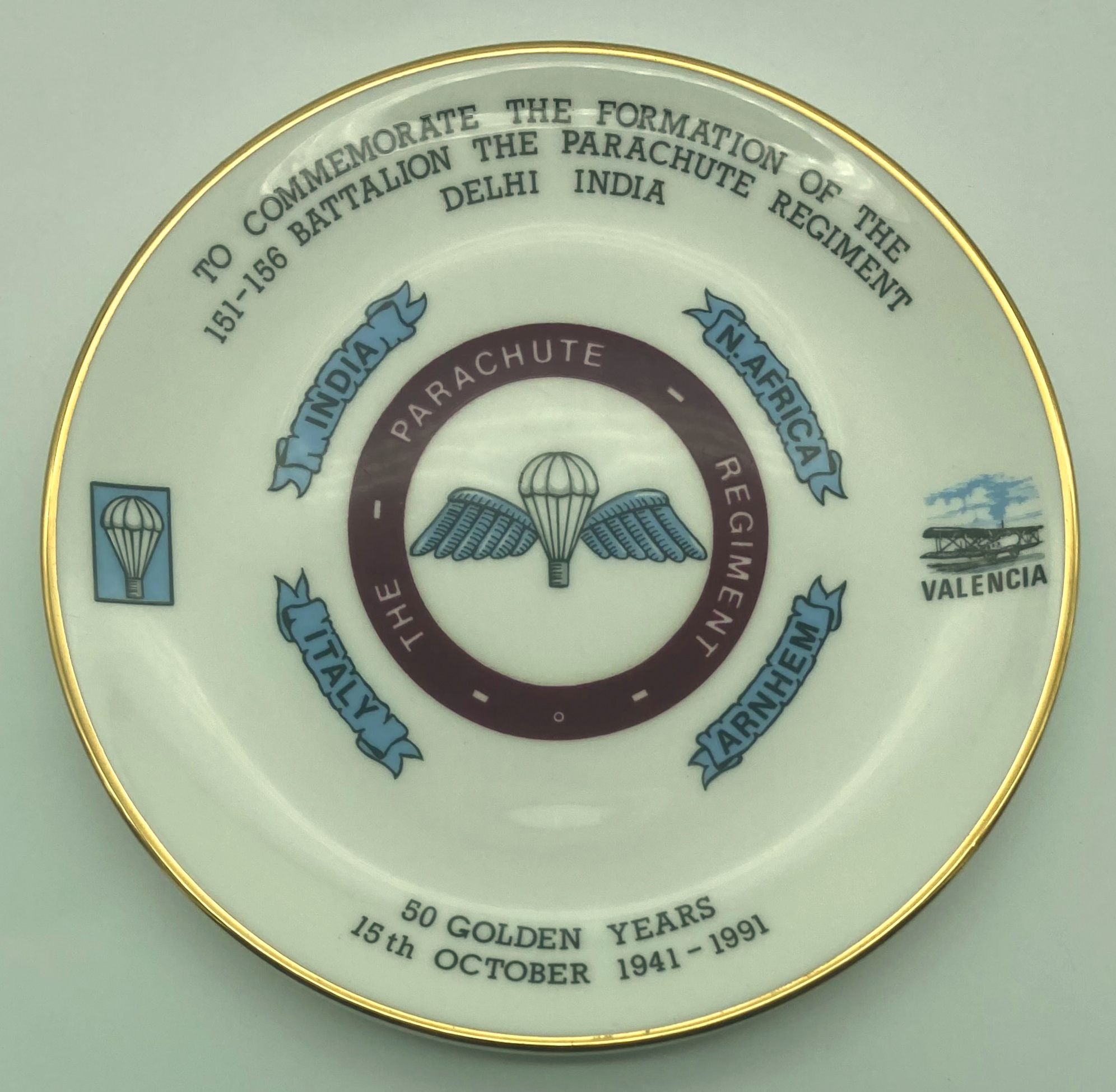 1991Glossy bone china plate commemorating the formation of the 151-156 Battalion of the Parachute Regiment, Delhi India.