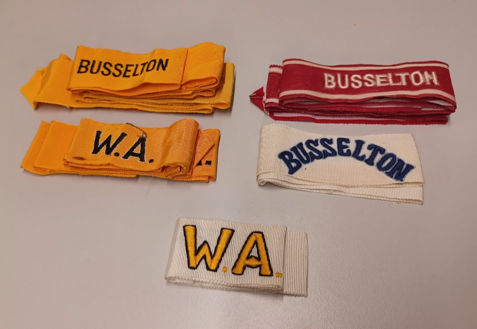 These hat bands were worn by Jessie Edna KOHLHAGEN (nee Yates), and were part of the uniform for playing lawn bowls.