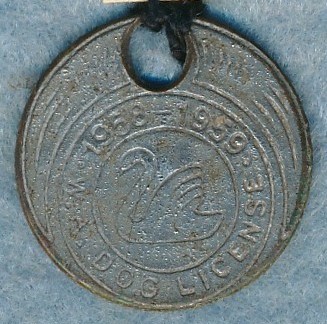 Embossed in the outer circle at the top is "1958 - 1959" and at the bottom is "W.A. DOG LICENSE"