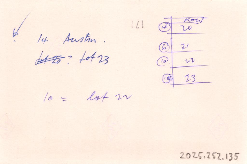 Reverse: Written on the reverse in blue pen '14 Austin', 'lot 23' and '10 = lot 22'