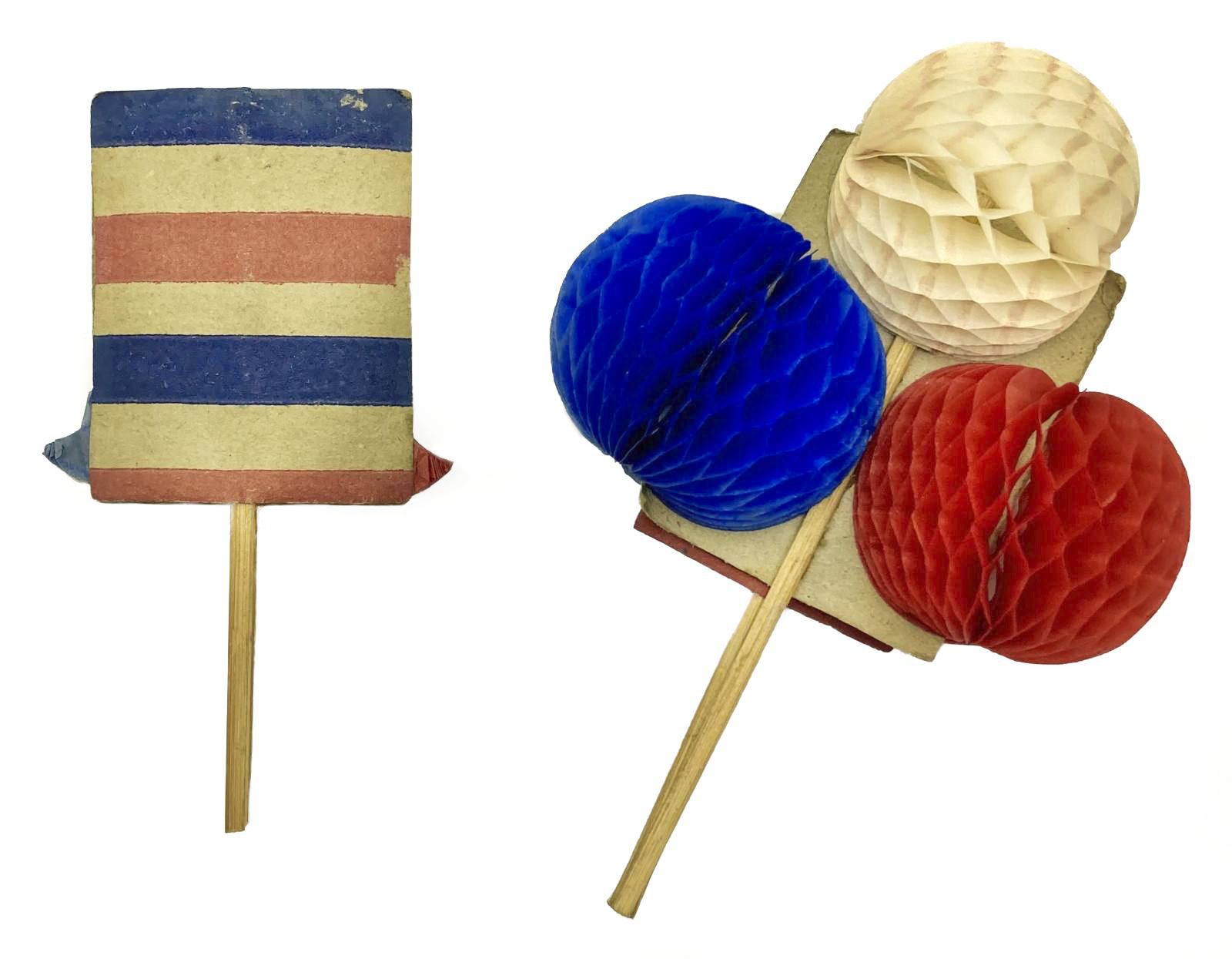 Pair of WWI era patriotic fold-out paper honeycomb balls