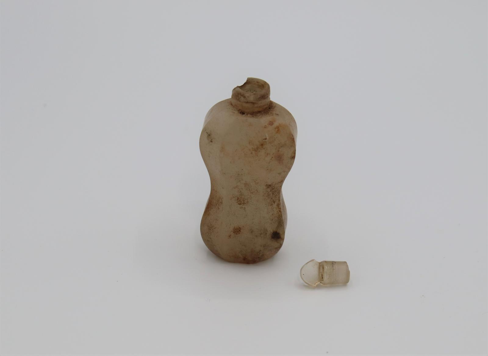 The neck of the bottle is chipped in places but still allows a good seal with the glass stopper.