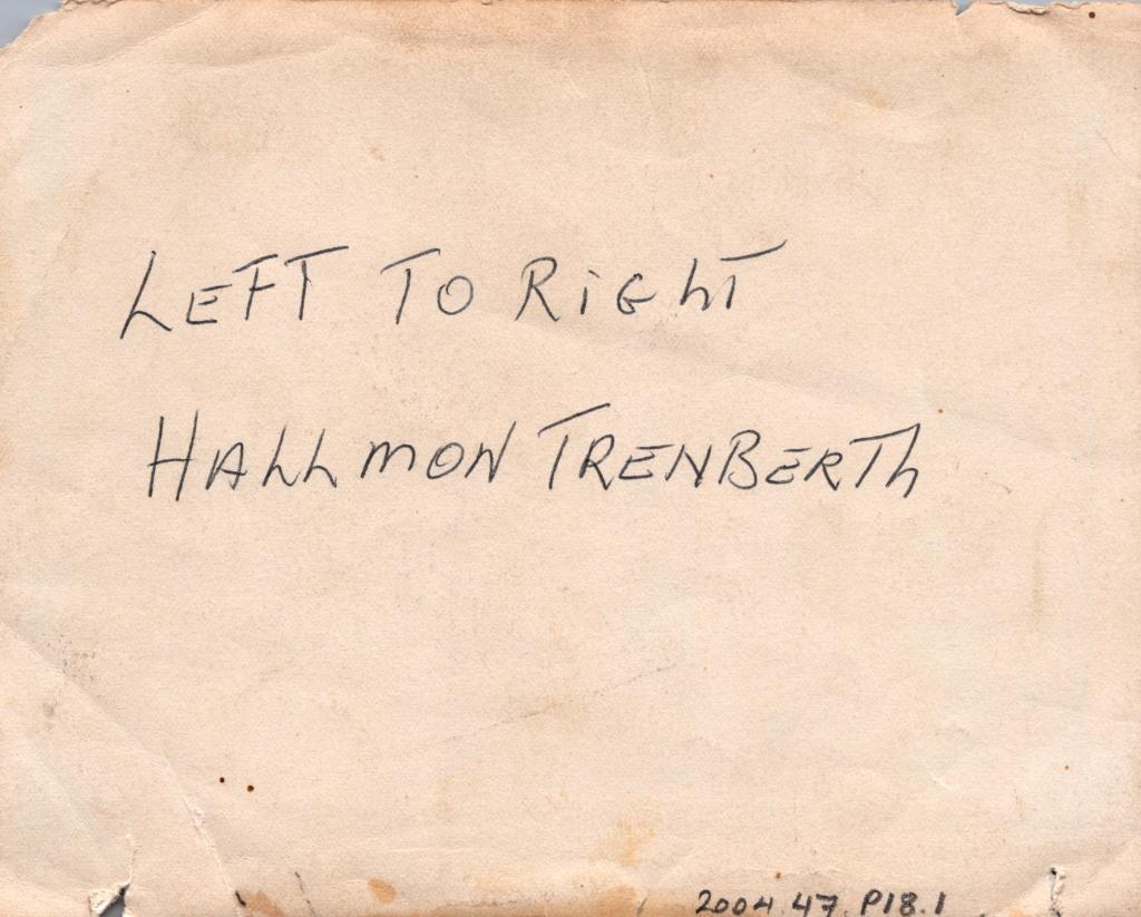 Reverse: Written in black pen 'LEFT TO RIGHT HALLMON TRENBERTH'