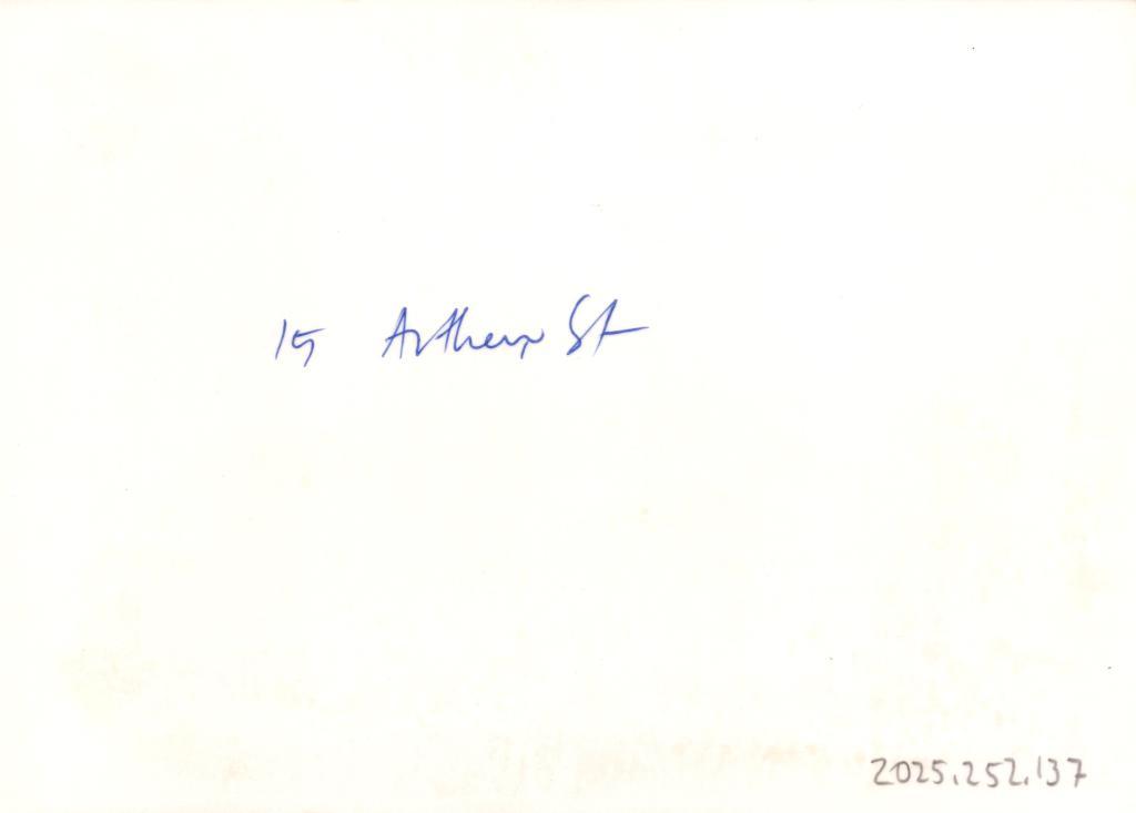 Reverse: Written on the reverse in blue pen '15 Arthur St'