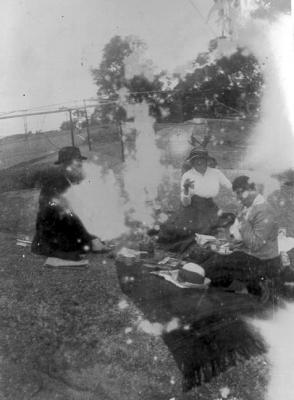 - Bessie McCallum and girls at Tea Gardens, King River, 1926.