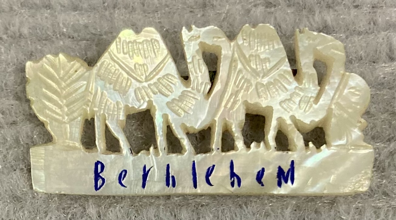 Mother of Pearl camel brooch sent from Bethlehem by Theophilus Thomas Walters