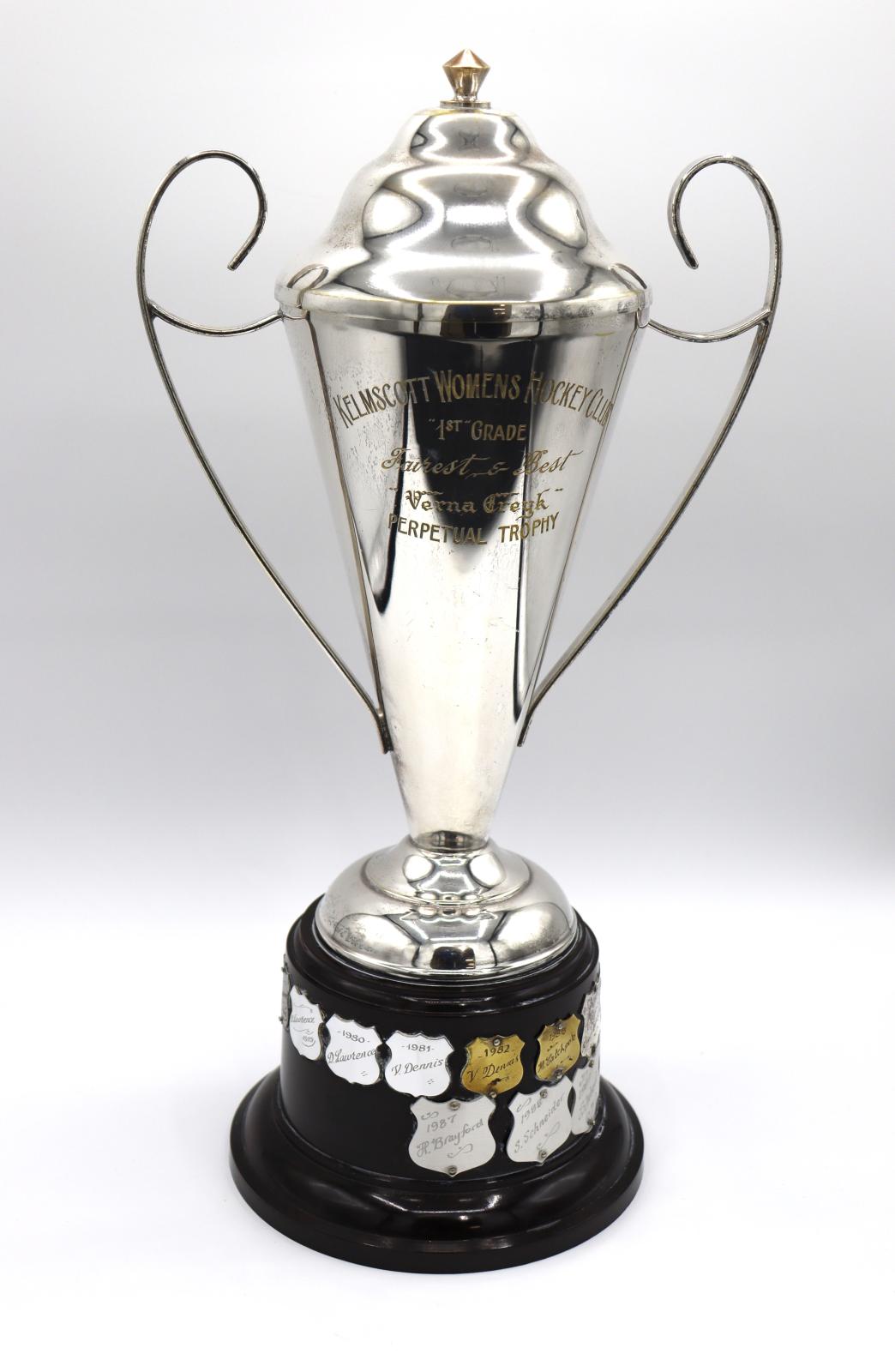 This Perpetual Trophy for the Fairest & Best player of the Kelmscott Women's Hockey Club was named in honour of Verna Creyk. Verna played hockey for Australia and was a State diver and gymnast. Verna's mother, Marjory, was the first female Life Member of the Kelmscott Football Club, where her son was a player. All six Creyk daughters played hockey for the Kelmscott Hockey Club. Creyk Park, in Waltham Rd, Kelmscott is named in honour of this sporting family.