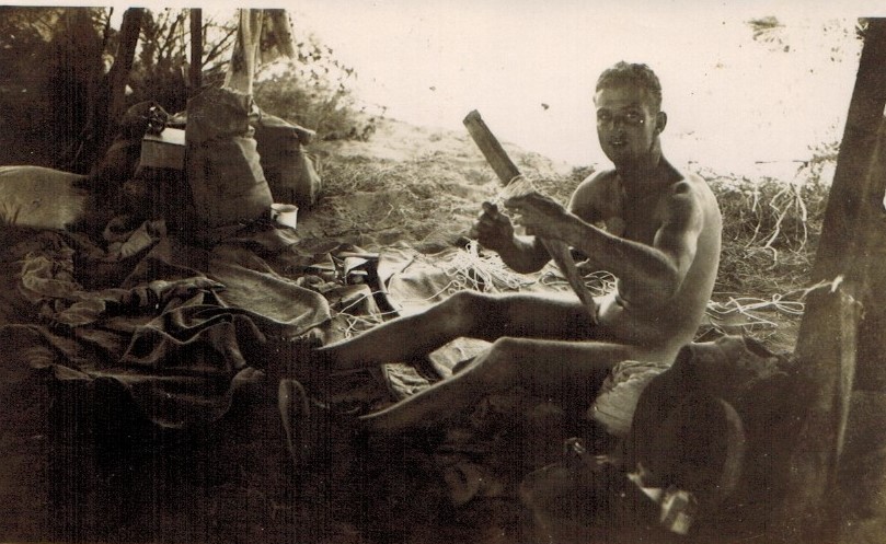 WX 35868 Sergeant Stephen Henry French in tent, gone native, 1943