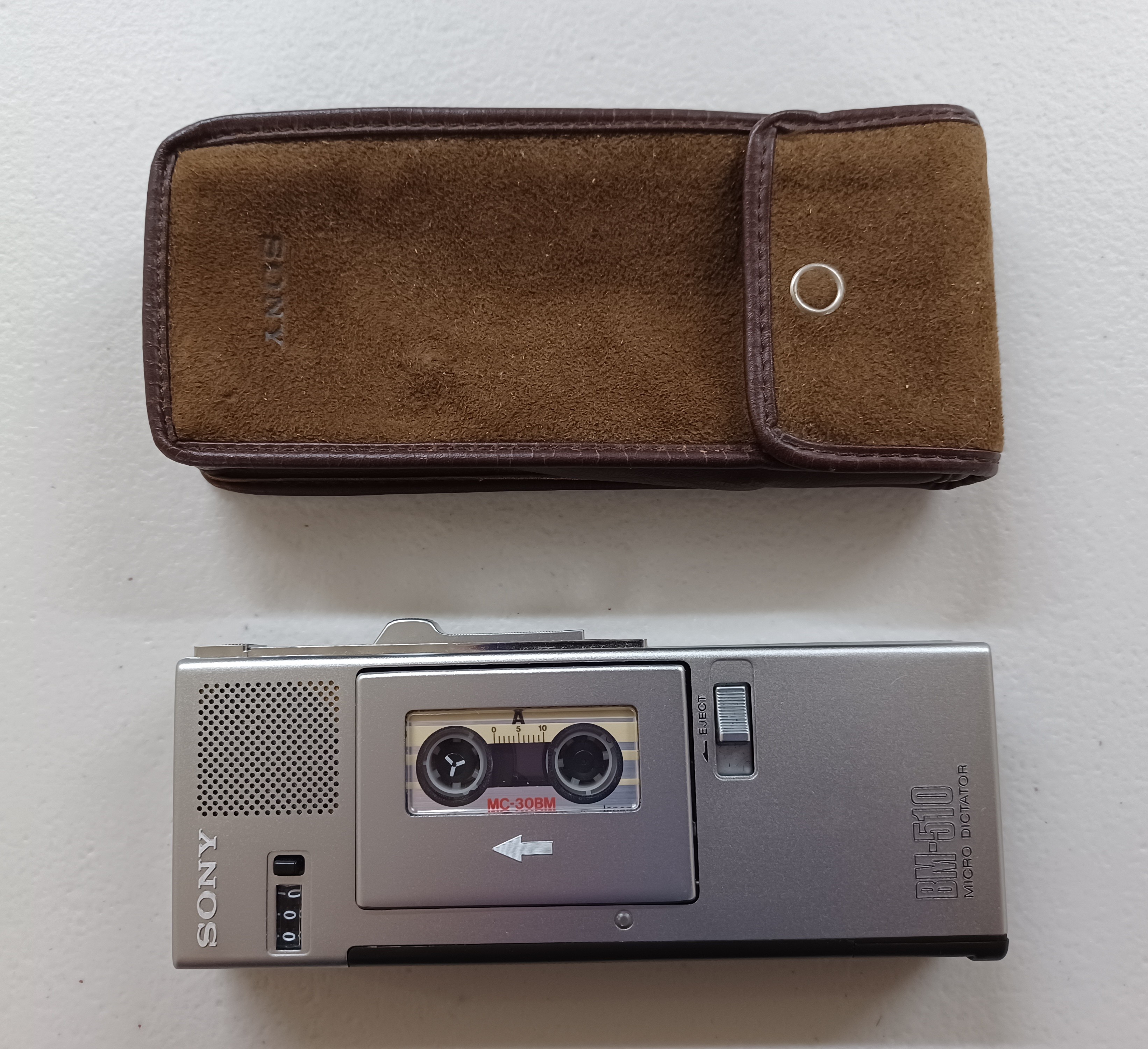 On device: "Sony BM-510 Micro Dictator. Microcassette Dictator. Made in Japan. Serial No. 13973"