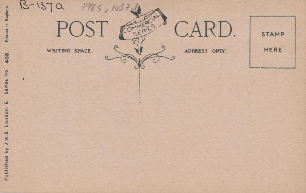 On reverse: 'Published by J.W.B. London. E. Series No 405. Printed in England.'