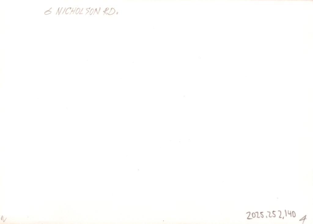 Reverse: Written on the reverse in pencil '6 NICHOLSON RD.'