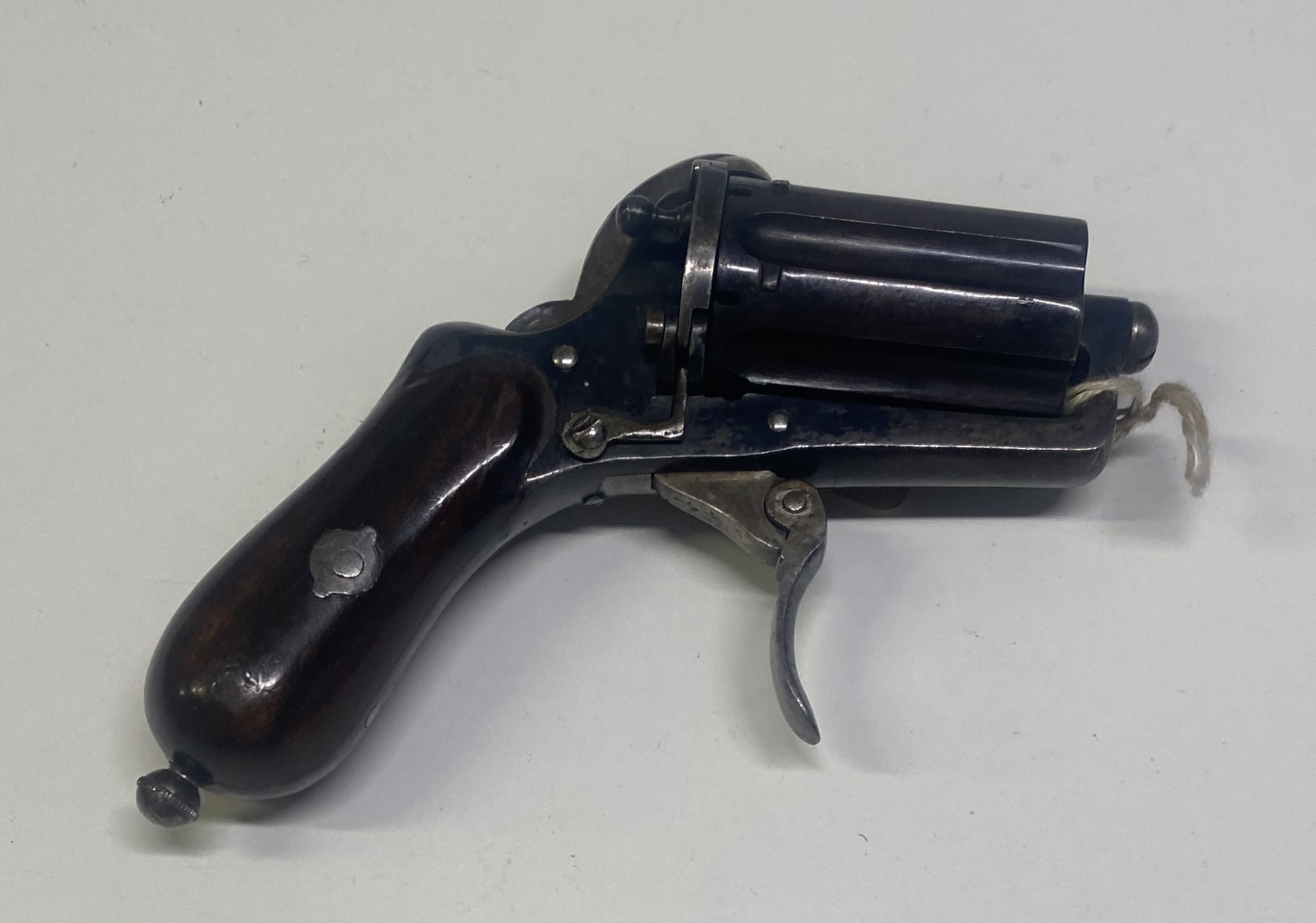 Sir Federick Samson's Belgian made 7 mm pinfire pepperbox multi‑barrel pocket revolver made in Liège from roughly the 1850s–1880s, chambered for the 7 mm Lefaucheux‑type pinfire cartridge and intended as a concealable civilian defence weapon. Calibre: Nominal 7 mm (often described in trade listings as 7 mm /.32).