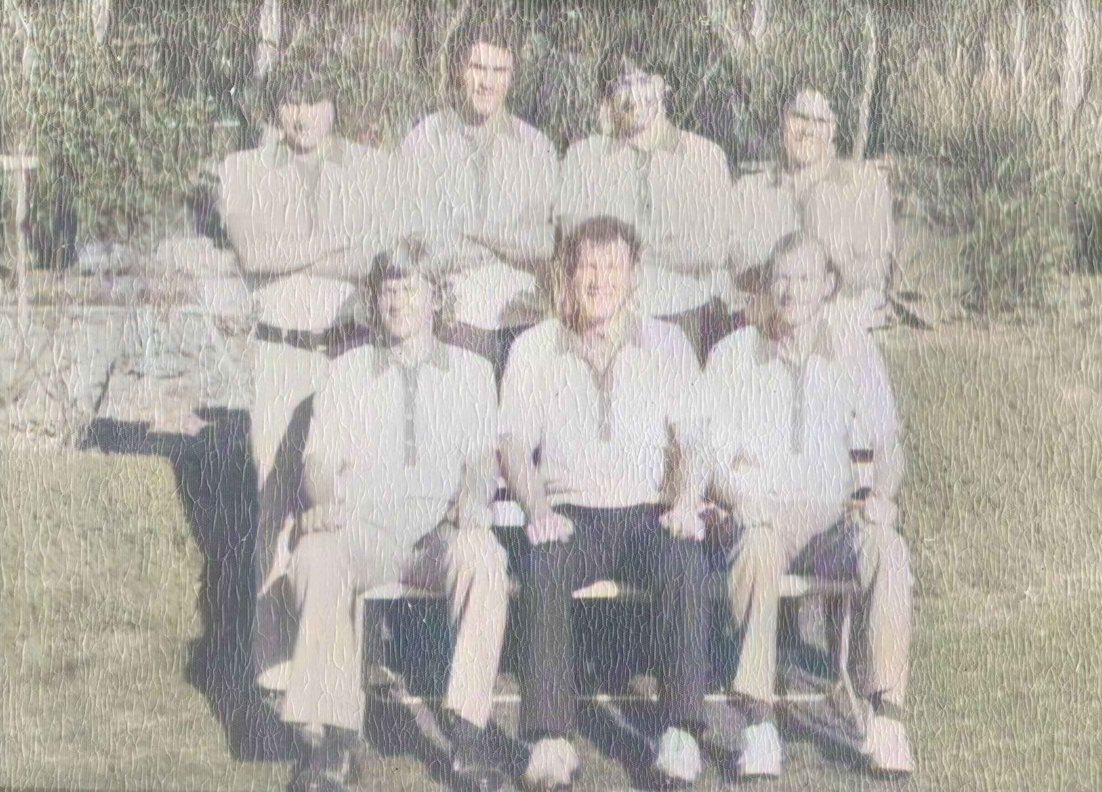 The photograph is severely degraded after almost 50 years in the frame and exposed to light. Apart from colour deterioration, numerous small heat distortion cracks were apparent. After scanning, the original photograph has been cropped, some preliminary effort has been completed to remove blemishes, and colour correction completed using an automatic algorithm. This product is the displayed picture whilst the uncorrected image is attached as a reference. The original is in a very fragile state.