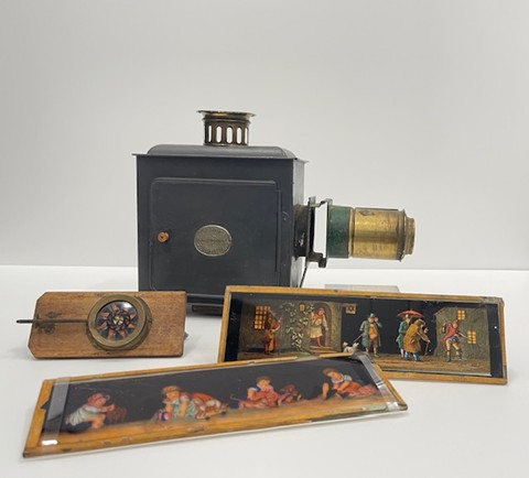 Before the invention of cinema, magic lantern slides were the main form of projected entertainment. In addition to projecting still images, various mechanisms were used to create slides with real or simulated “moving” images.