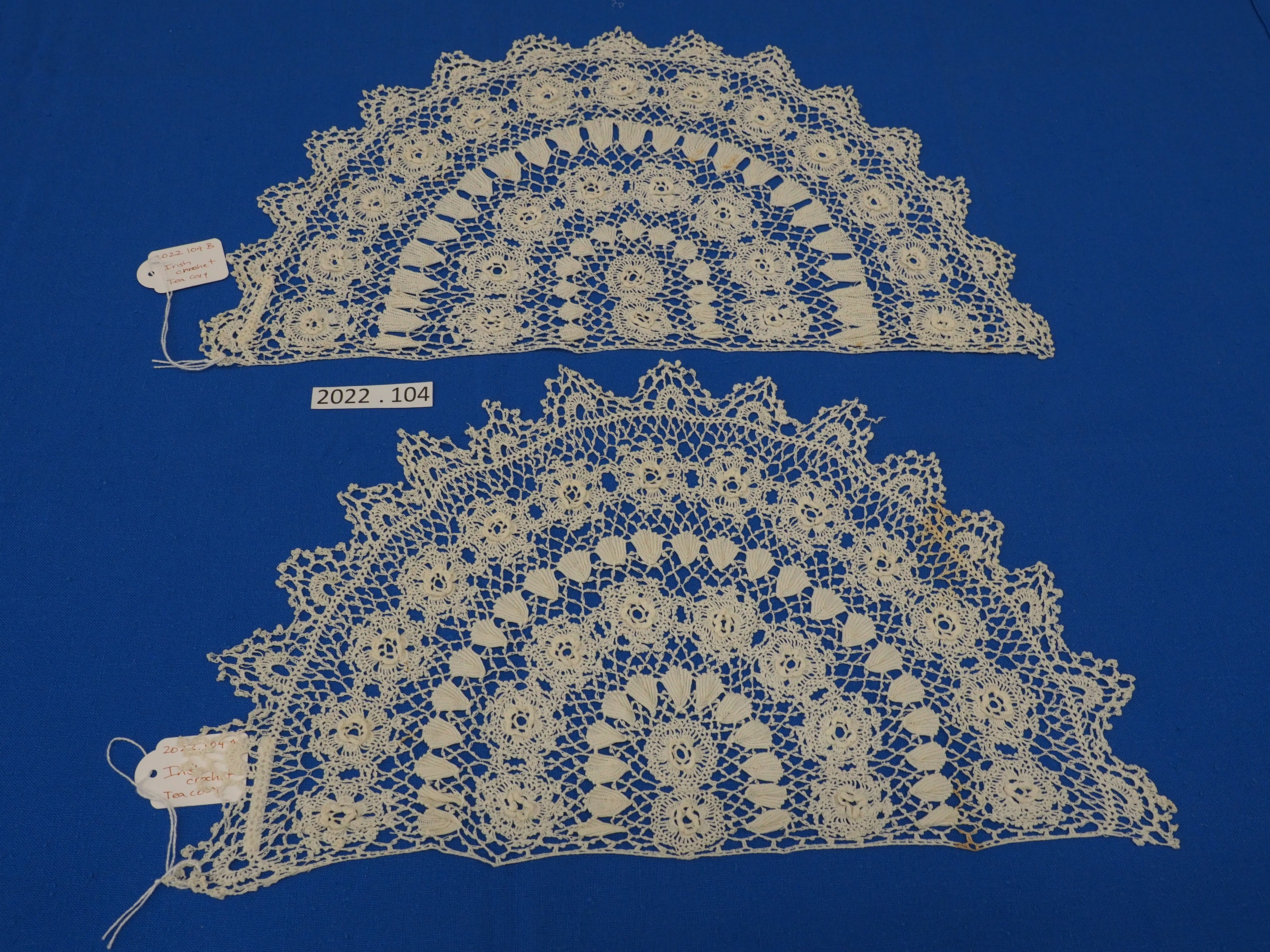Two parts, front and back of an Irish crochet tea cosy, an important household accessory in 19th C.