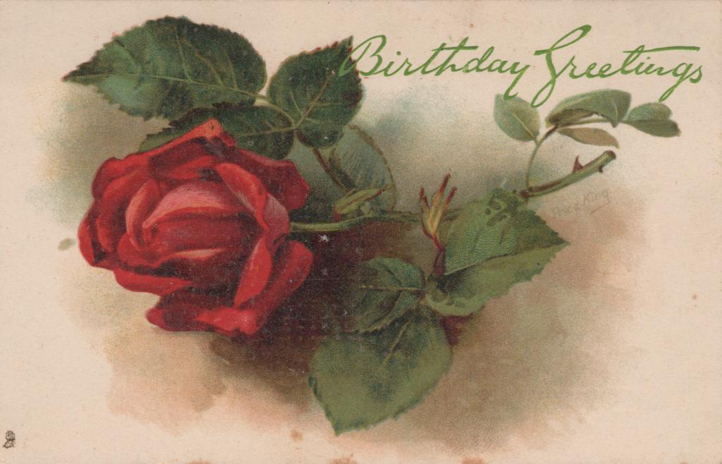 POSTCARD: LILLIAN DENNIS 'BIRTHDAY GREETINGS' RED ROSE