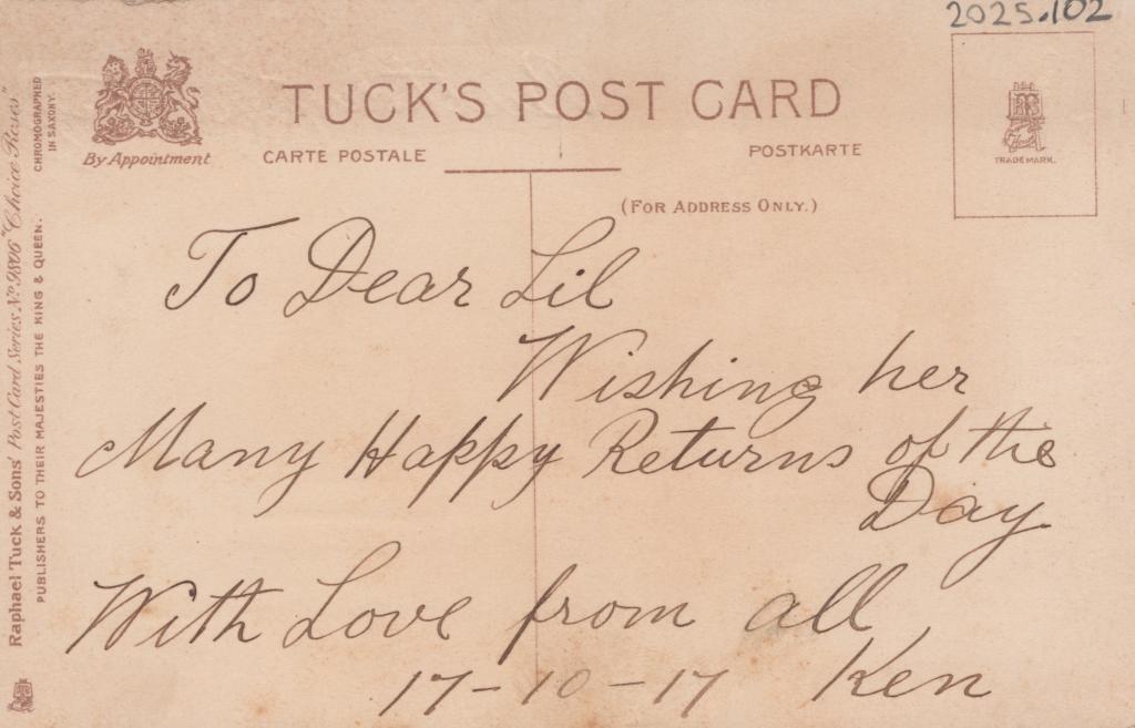 Example of a birthday postcard of the time. Sent to Lillian Dennis by her father for her 31st birthday.
