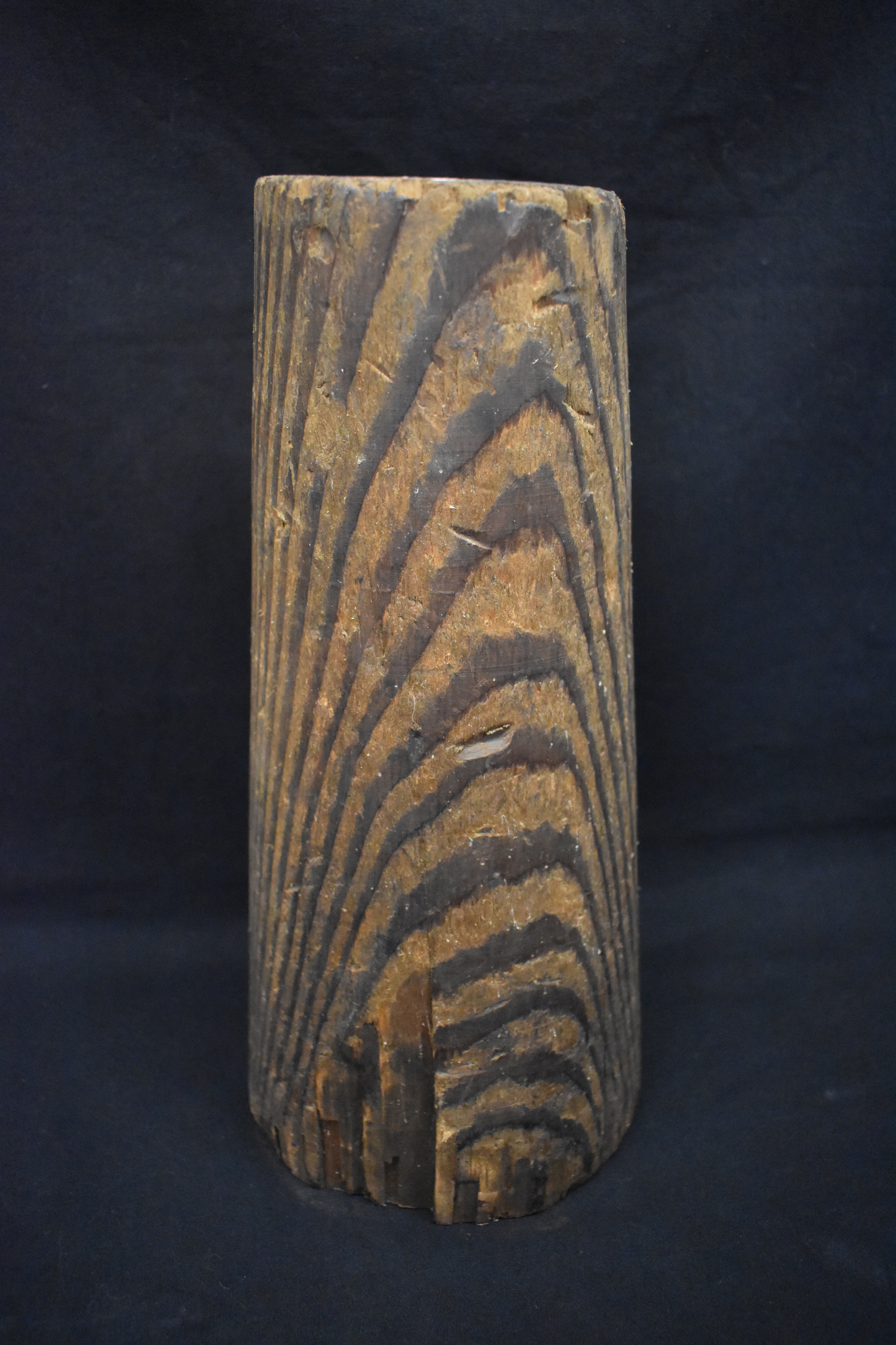 c. 1990Cone-shaped piece of wood with a larger circumference at the base and tapered to a smaller top.