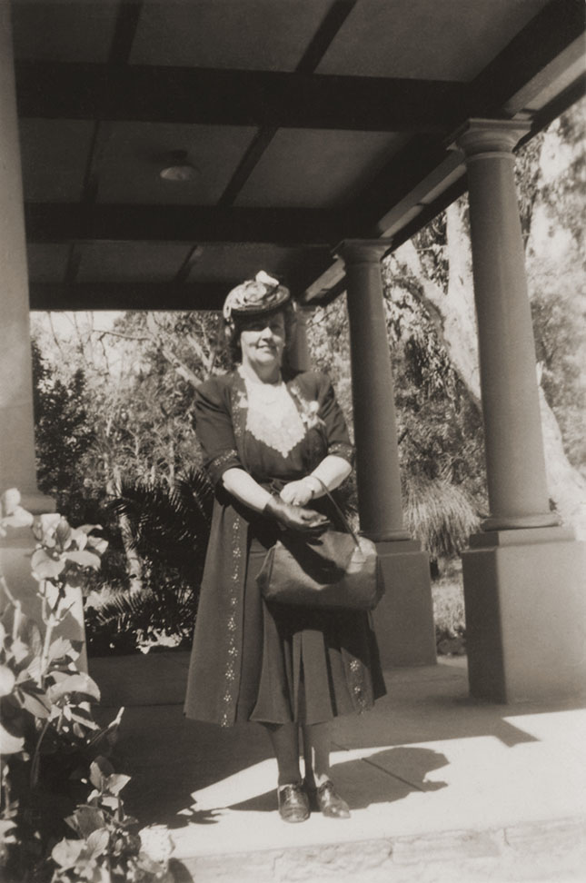 1946Senator Dorothy Tangney beside two pillars outside a Yanchep building.