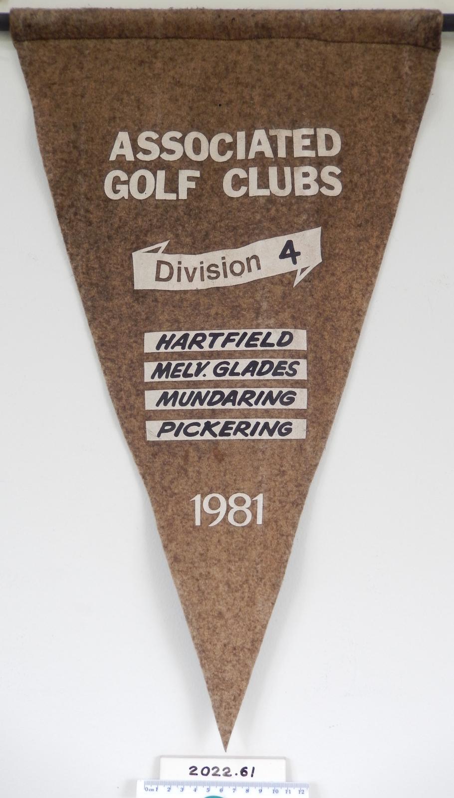The pennant recognises MGGC's win in the Men's Associated Golf Clubs' 4th Division in 1981.