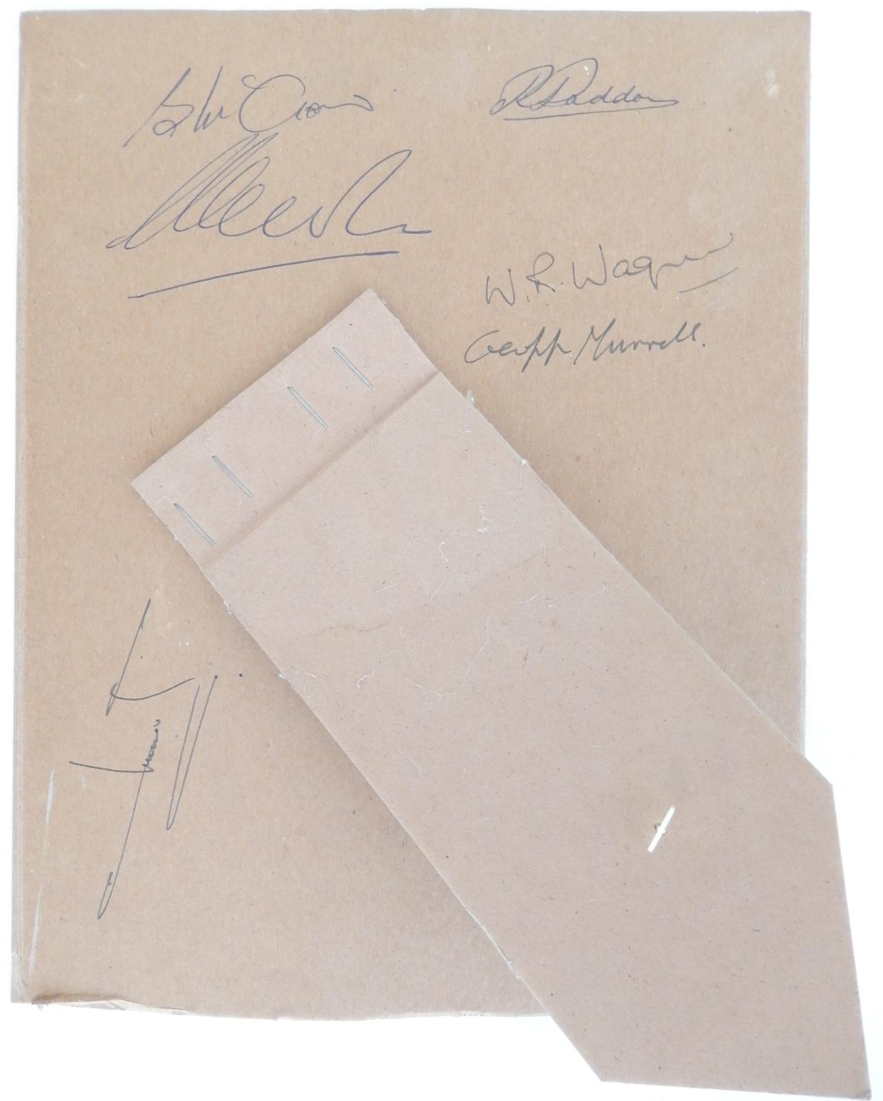 The cardboard backing at the rear of the frame has signatures of most of the team's players. These are: