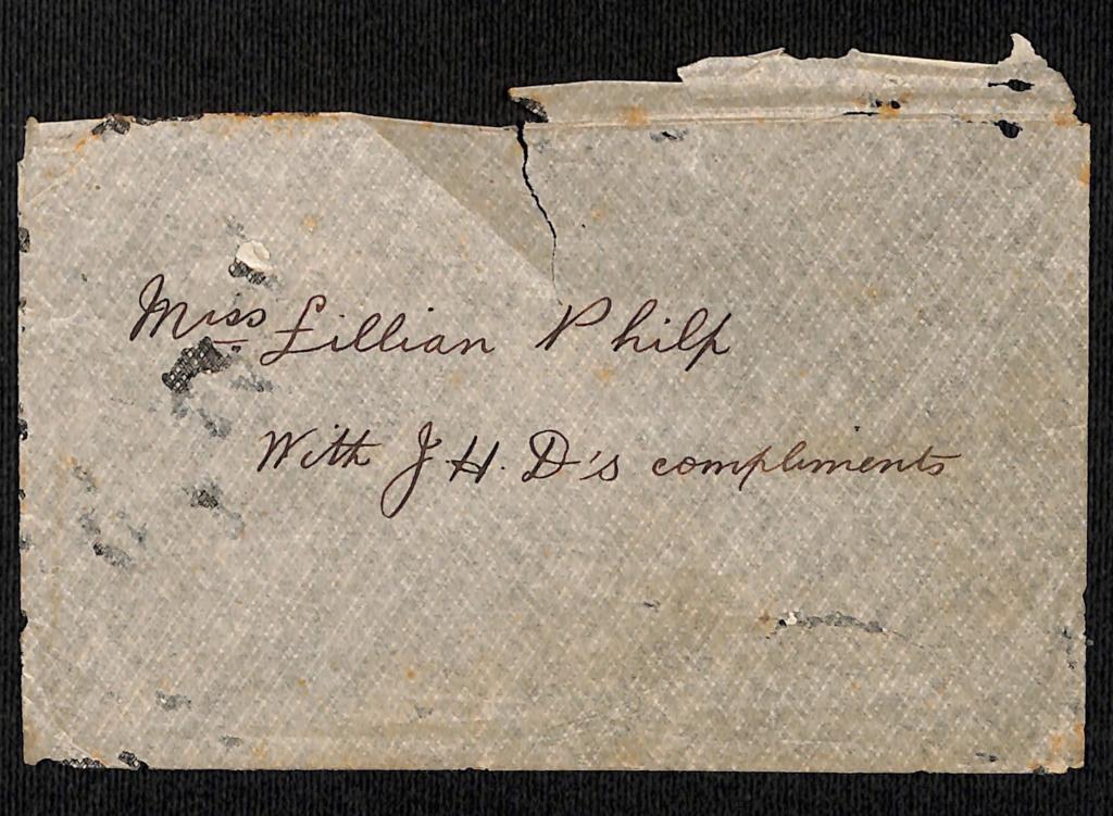 ENVELOPE: TO LILLIAN PHILP 'WITH JHD'D COMPLIMENTS'