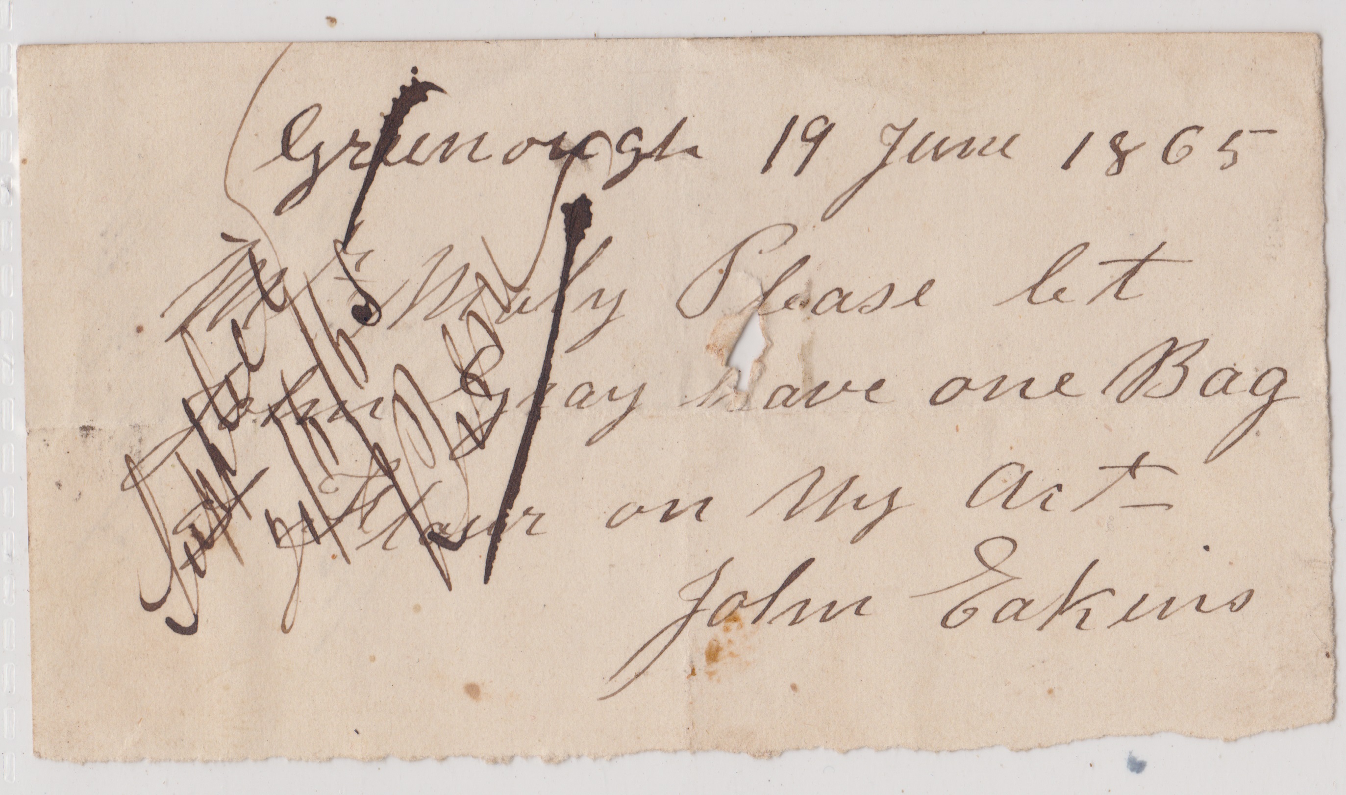 Mr Maley Please let John Gray have one Bag of Flour on my act