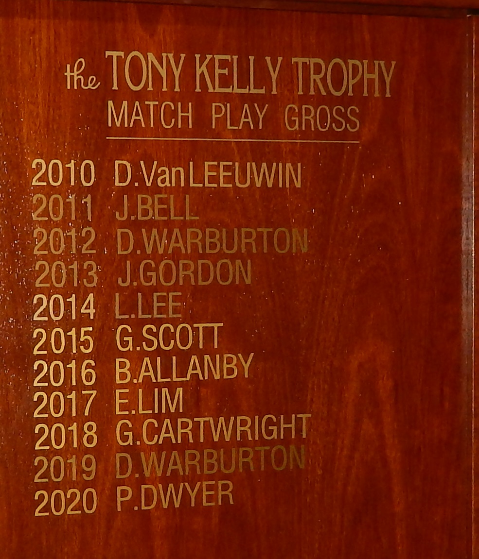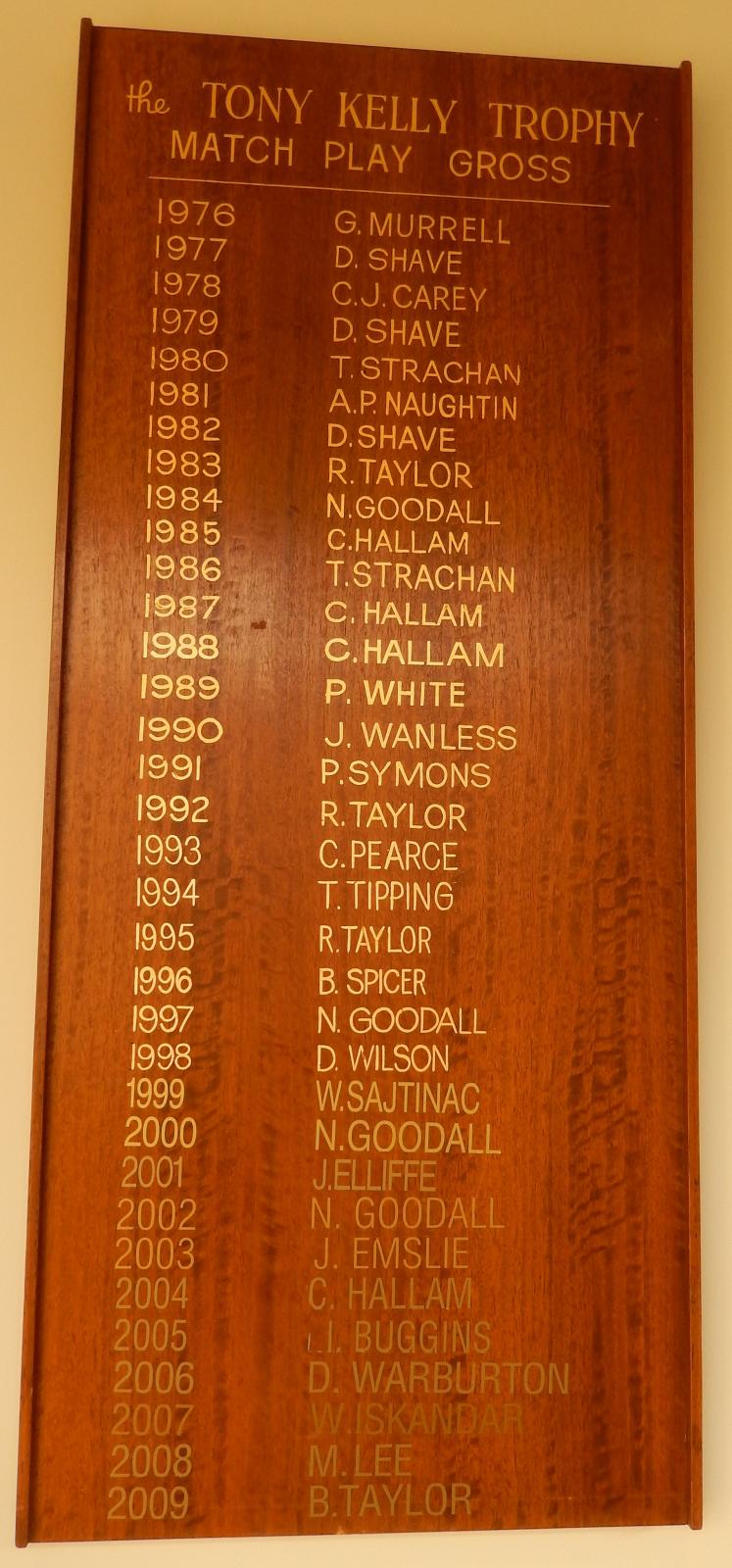 1976The Tony Kelly Trophy recognises the Men's Match Play Gross winners.