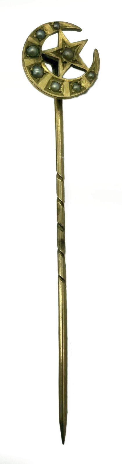Ottoman gold and seed pearl stick pin in form of crescent and star