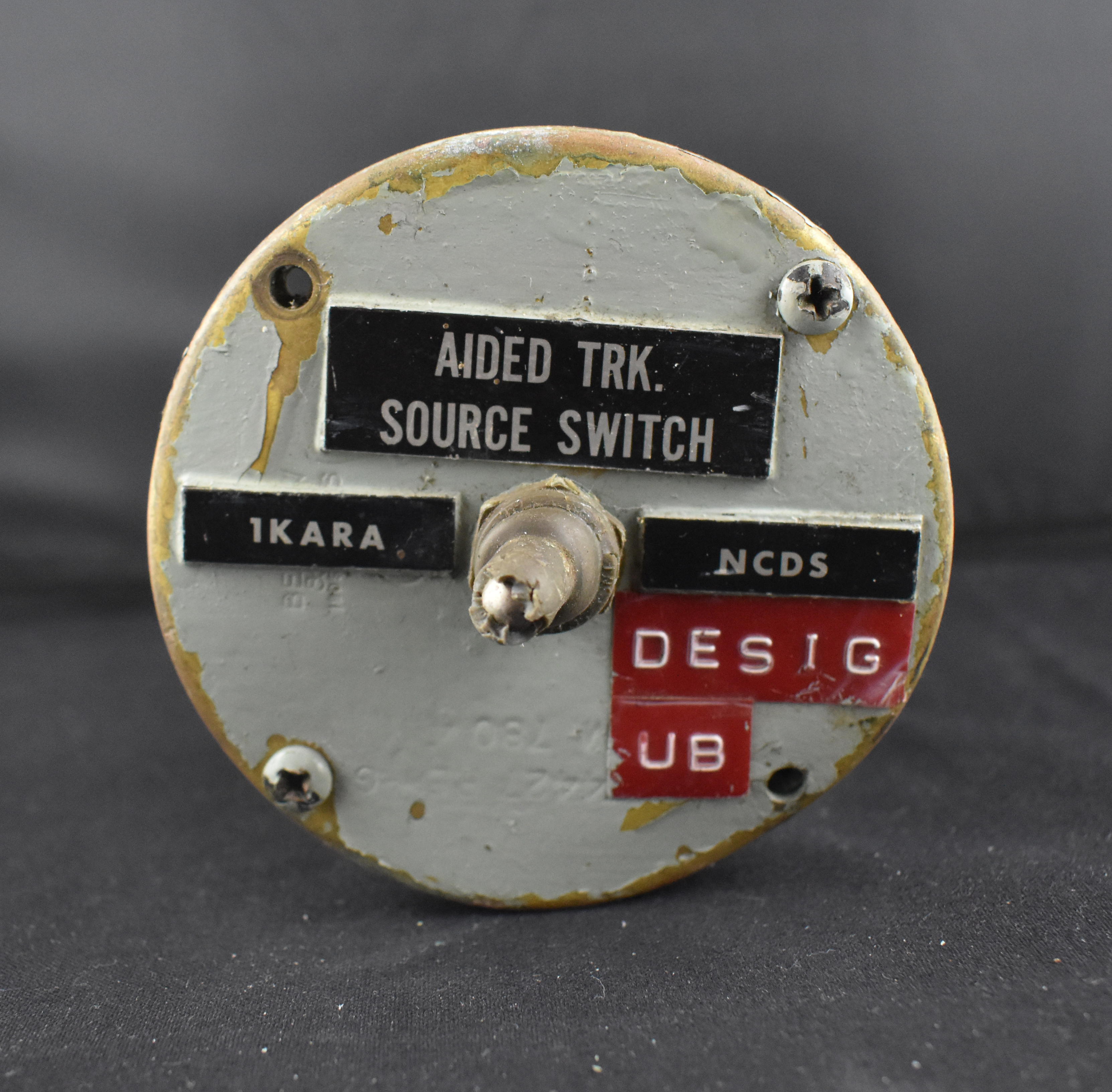 On front on several black labels "AIDED TRK. / SOURCE SWITCH", "1KARA" and "NCDS". "DESIG" and "UB" on plastic red labels.