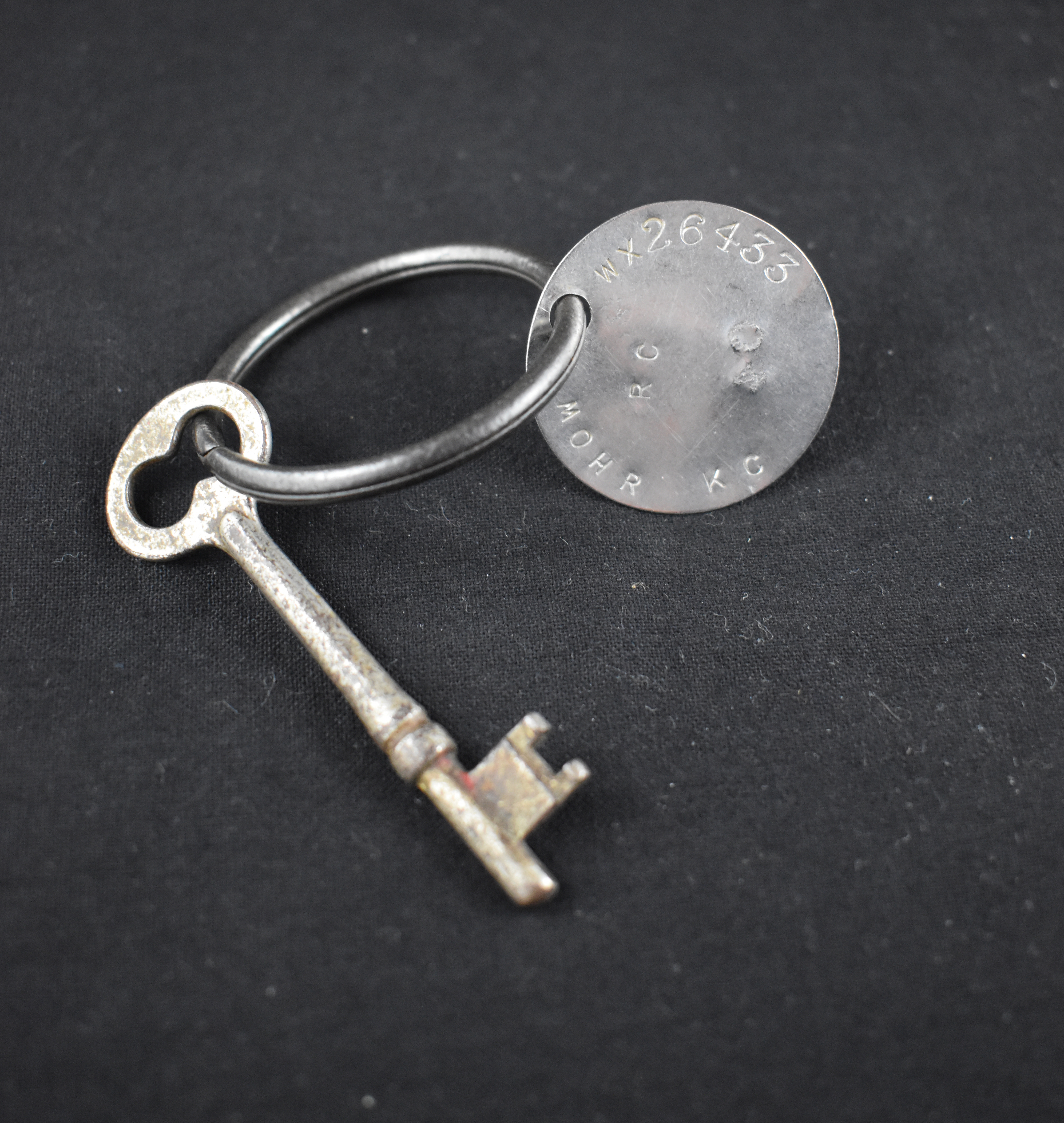 Second World War Metal Identity Disc issued to Sapper Kingsley Charles MOHR WX26433 with Key
